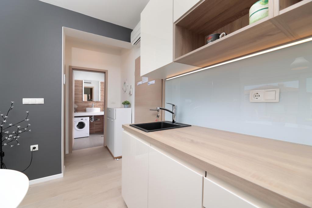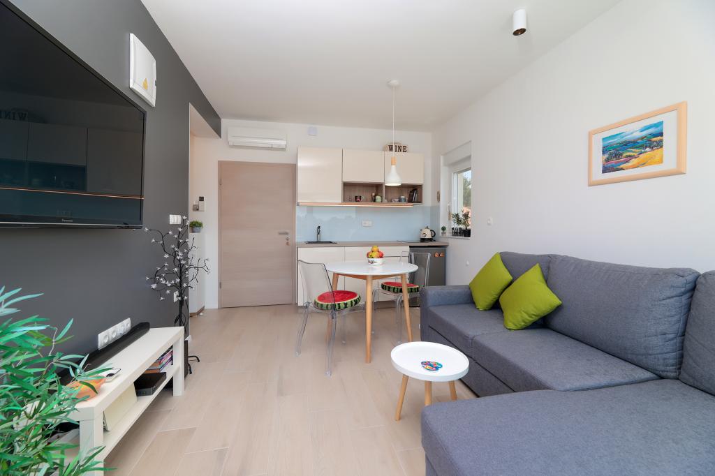 Les appartements sont luxueusement équipés de climatiseurs Mitsubishi inverter dans chaque chambre, grande TV diagonale avec tous les programmes satellites européens, Netflix, cuisine moderne avec plaque à induction, salle de bain avec douche, grand store de balcon moderne qui monte et descend, et grand appartement "Alan 3 " dispose d'un bureau avec un écran 4K à grande diagonale. Vous pouvez également louer des vélos électriques avec une autonomie de plus de 60 km sur une seule charge de batterie.