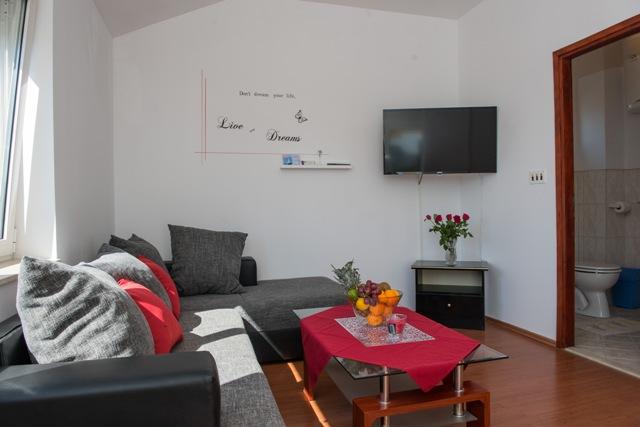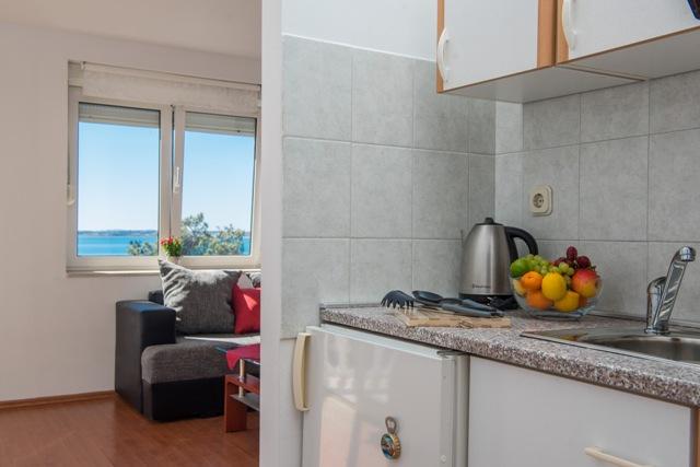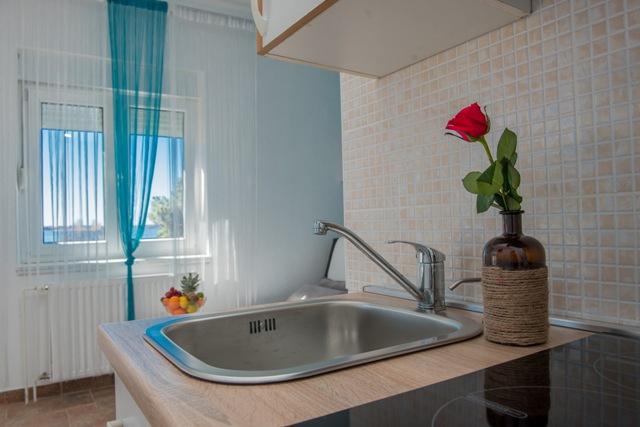 La résidence Fila comprend 6 appartements : 4 appartements d'une pièce et 2 studios. Située au calme, elle se trouve à environ 30 mètres de la plage de Mulo-Vrsi et à 250 mètres du centre-ville, où vous trouverez de nombreux restaurants, boutiques de souvenirs et commerces. À proximité immédiate (environ 50 mètres), vous trouverez deux cafés et un fast-food. La plage de Mulo-Vrsi propose diverses activités sportives telles que le kitesurf, la planche à voile, la location de bateaux, de parasols et de transats.