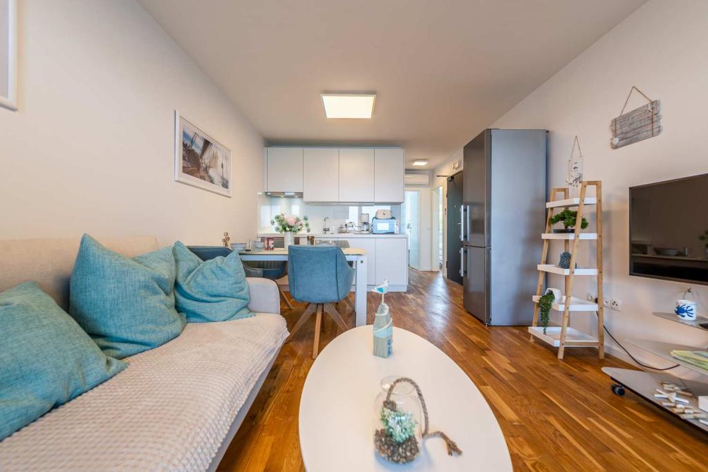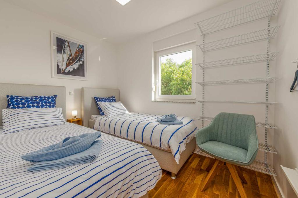 Appartement en première ligne face à la mer ! À 10 mètres de la plage piétonne. À 5 minutes de la vieille ville de Nin. Appartement moderne et joliment décoré, cuisine très bien équipée (lave-vaisselle, grille-pain, bouilloire, cafetière électrique, micro-ondes, réfrigérateur et congélateur, four, 4 plaques à induction). Une chambre avec un lit double et une chambre avec deux lits simples. Douche et lave-linge. Superbe vue sur la mer depuis votre terrasse.