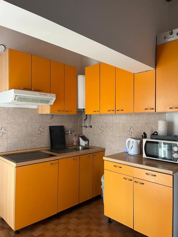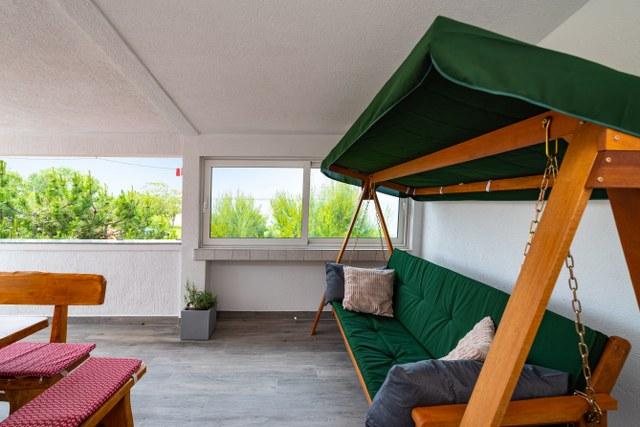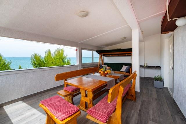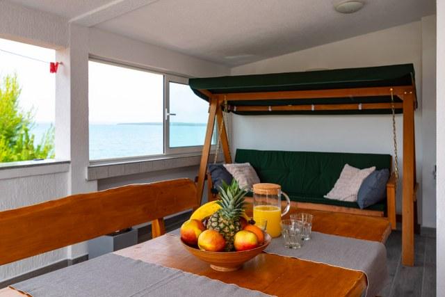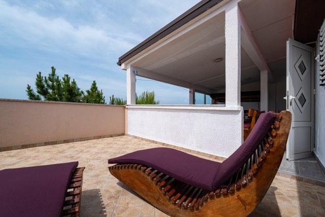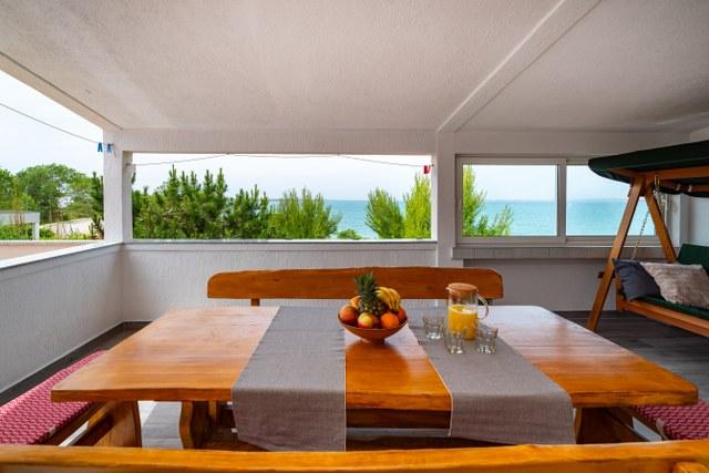 Bel appartement avec une grande terrasse donnant sur la mer. La distance jusqu'à la mer est sans aucun doute un avantage (par la route et directement à la plage). Sur la terrasse il y a des transats, une balançoire et vous pourrez admirer le coucher du soleil. Chambre avec un grand réfrigérateur, climatisation, lave-vaisselle.