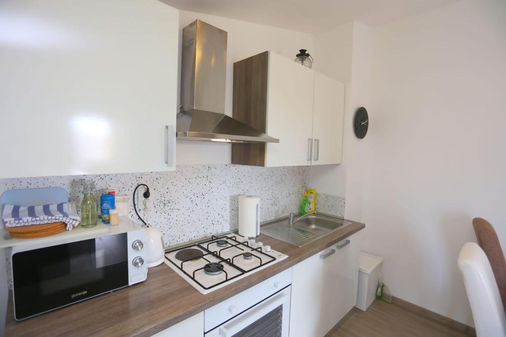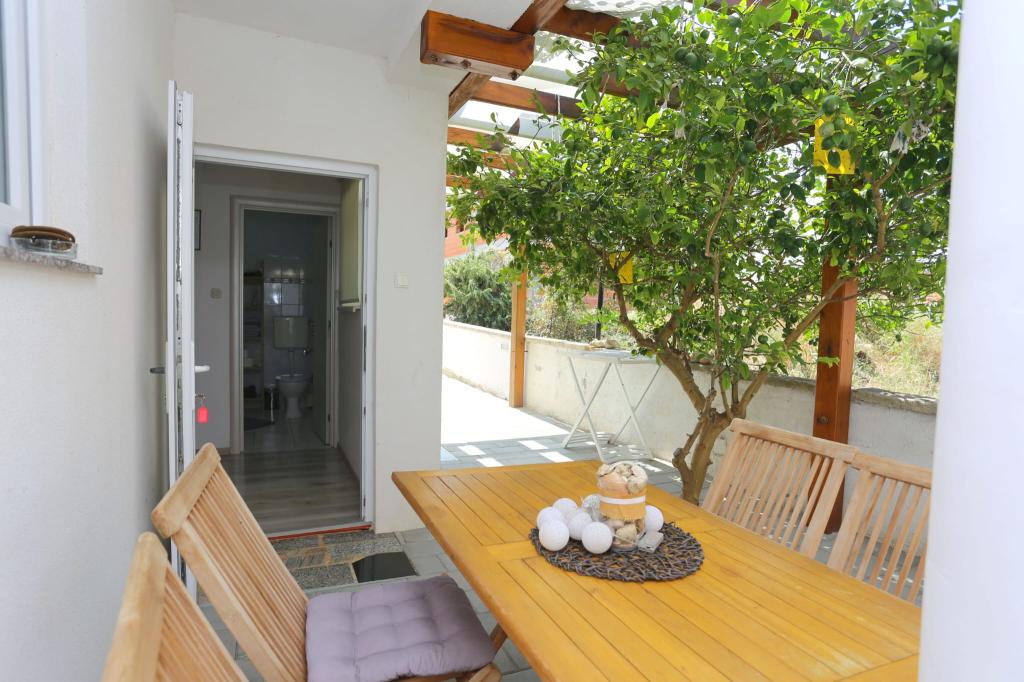 Les appartements sont situés dans une maison comprenant quatre logements et un parking pour six véhicules. La plage, le restaurant et le magasin les plus proches sont à 10 minutes à pied. Ils sont entièrement meublés et équipés. Ils disposent du Wi-Fi, d'une douche extérieure, de la climatisation, de draps et de serviettes. Un barbecue au charbon de bois et une peka (pour préparer des repas au gril ou au peka) sont à votre disposition.