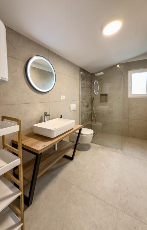 Appartements spacieux, récemment rénovés et entièrement équipés, situés à seulement 15 mètres de la mer. L’Appartement 1 se trouve au rez-de-chaussée (100 m² avec terrasse) et dispose d’un jardin privé, tandis que l’Appartement 2 est situé à l’étage (70 m² avec un balcon de 50 m²), ce qui les rend idéaux pour les familles et les groupes d’amis. Chaque appartement comprend deux chambres, un salon, une cuisine et une salle de bain. Les hôtes disposent de la climatisation, de la télévision et du Wi-Fi. L’établissement propose également un parking privé et une douche extérieure. Un atout particulier est constitué par les magnifiques couchers de soleil et la vue imprenable sur le massif du Velebit.