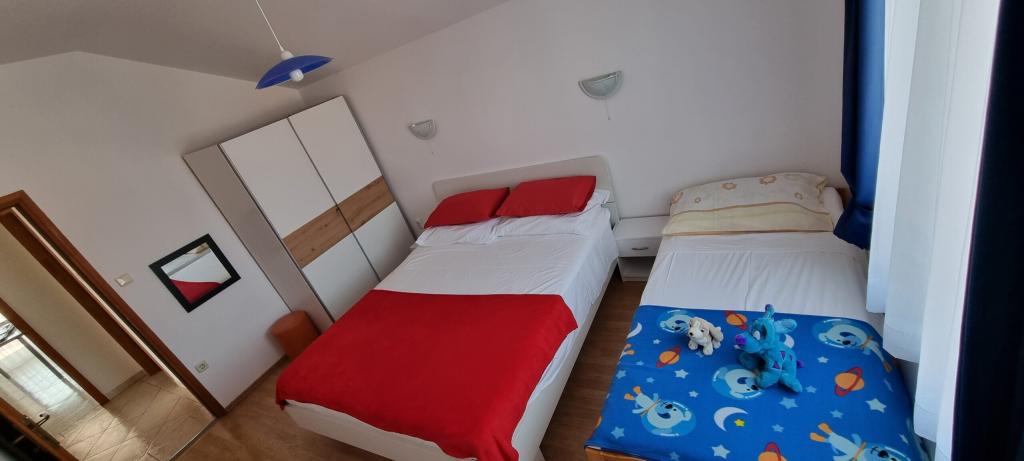 La maison familiale est située à Vrsi, à 20 km de Zadar et à environ 5 km de la ville royale de Nin. Les appartements sont situés au premier et au deuxième étage de la maison, d'où vous pouvez voir une vue magnifique sur la mer, qui se trouve à seulement 150 m. La maison dispose d'une grande cour et de six places de parking pour les invités. La distance des commerces, boucherie, boulangerie, marché, restaurant, gare routière est d'environ 100 m. Visitez-nous et profitez de la mer limpide, du magnifique coucher de soleil et sentez-vous comme chez vous ! La ville possède une riche côte de 34 km de long, avec des plages diverses.