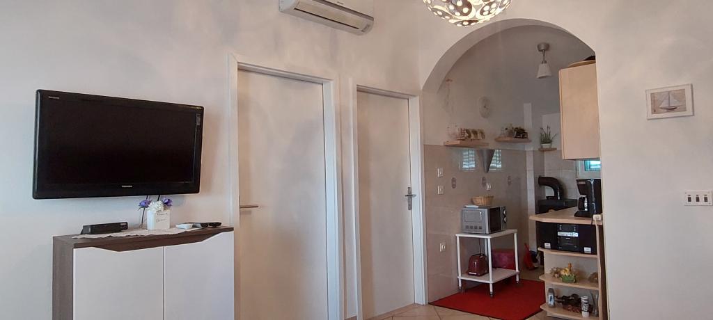 L'appartement est entièrement meublé. Il dispose de deux grandes chambres, une salle de bains, une cuisine reliée avec un grand salon, terrasse avec vue sur la mer, la climatisation, Internet (Wi-Fi). Le parking est dans la cour. J'ai un grill, vous pouvez donc avoir un barbecue tous les jours. Boutique dans notre rue, à côté de la maison. La plage est à proximité, 2-3 minutes à pied. Sur la plage sont des parasols en chaume et des chaises longues qui peuvent être loués tous les jours. Distance de la ville Nina est nécessaire 3 minutes en voiture de la ville de Zadar 15 minutes en voiture. Appartement entièrement meublé est situé dans un village calme Vrsi-Zukve.