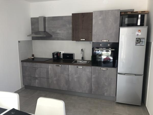 Appartements flambant neufs, décorés de façon moderne. Chaque appartement dispose de 2 chambres, d'une salle de bain complète (lave-linge) et de toilettes supplémentaires. La cuisine est entièrement équipée (four, micro-ondes, lave-vaisselle, cafetière, grille-pain), belle terrasse bordée de bois. Les deux appartements sont au rez-de-chaussée. A 80 m de la mer et de la plage de galets, le long de la plage se trouvent une promenade, une aire de jeux pour enfants, un beach-volley et d'autres commodités. Parking sécurisé.