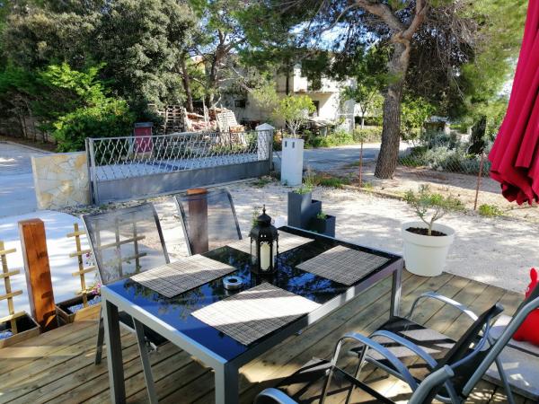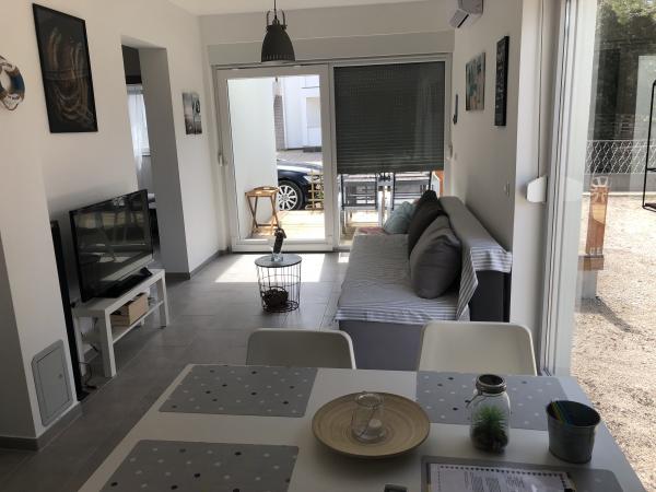 L'appartement est propre et décoré de façon moderne, équipé de toutes les commodités nécessaires. Nous avons particulièrement apprécié la belle terrasse et le confort du lit ; aucun de nous quatre n'a eu à dormir sur le canapé. L'établissement est très proche de la plage. Nous sommes satisfaits du prix. Les hôtes sont extrêmement gentils et serviables. Le jardin est joliment décoré de plantes méditerranéennes parfumées et il y a suffisamment d'espace pour se garer. Un vrai plus pour nous : la visite régulière des hérissons et des tortues. Nous reviendrons sans hésiter.