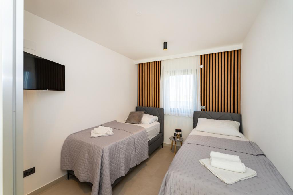 La Villa LaMag, une villa moderne de construction récente, est située dans le magnifique et paisible village de Vrsi Zukve, à 20 km de Zadar, à 5 km de la ville royale de Nin et à environ 2h30 de route de Zagreb. La plage est à seulement 3 minutes à pied, le restaurant le plus proche à 400 mètres et le supermarché à moins d'un kilomètre. Explorez les magnifiques plages de sable de Nina et Ljubača (à 10 minutes en voiture) ou visitez les îles voisines de Pag et Vir, reliées par un pont. Le charme historique de la vieille ville de Zadar, avec ses ruelles et ses trésors culturels, est à seulement 25 minutes en voiture. Votre appartement est donc le point de départ idéal pour découvrir les merveilles de cette incroyable région côtière.