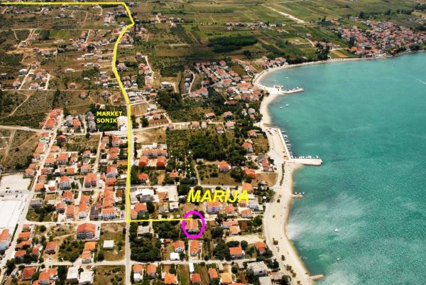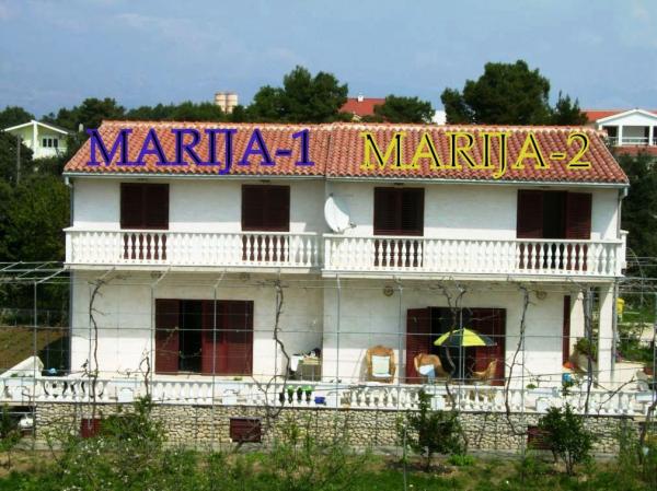 MARIJA-1 et MARY-2- confortable maison jumelée avec 2 appartements séparés pour deux ou plusieurs familles ou des groupes (de 16-18 personnes), toutes les chambres (4 4) sont au premier étage, le rez-de-chaussée est un grand salon sur chaque côté (24m2 et 28 m2) avec une table pour 10 personnes, une cuisine avec tous les appareils nécessaires pour cuisiner et servir la nourriture pour 10 personnes, un canapé-lit (pour 2 adultes), télévision par satellite, radio CD, DVD, grande terrasse (32m2 31m2 ) avec des meubles en osier de jardin, barbecue, un total de 5 kupaonaa, 3 avec baignoire et 2 avec douche. Chaque appartement dispose d'une machine à laver. linge, serviettes, torchons, gaz, électricité, eau, boisson de bienvenue et des boissons Voyage, parking, WiFi, copie, fax, animaux domestiques, taxe de séjour et le nettoyage final Bed sont inclus. La maison est située à 80 mètres de la mer et à 70 mètres entre les deux rues, de sorte que les petits enfants peuvent jouer en toute sécurité dans la cour. 8 chambres 5 d'entre eux dispose d'un balcon, 4 avec une vue imprenable sur la mer et l'autre sur la mer et le jardin.