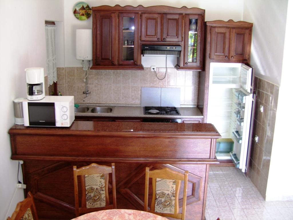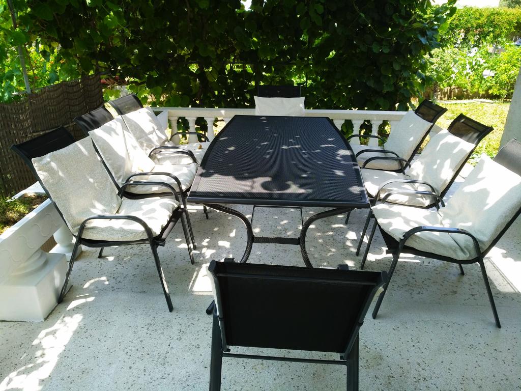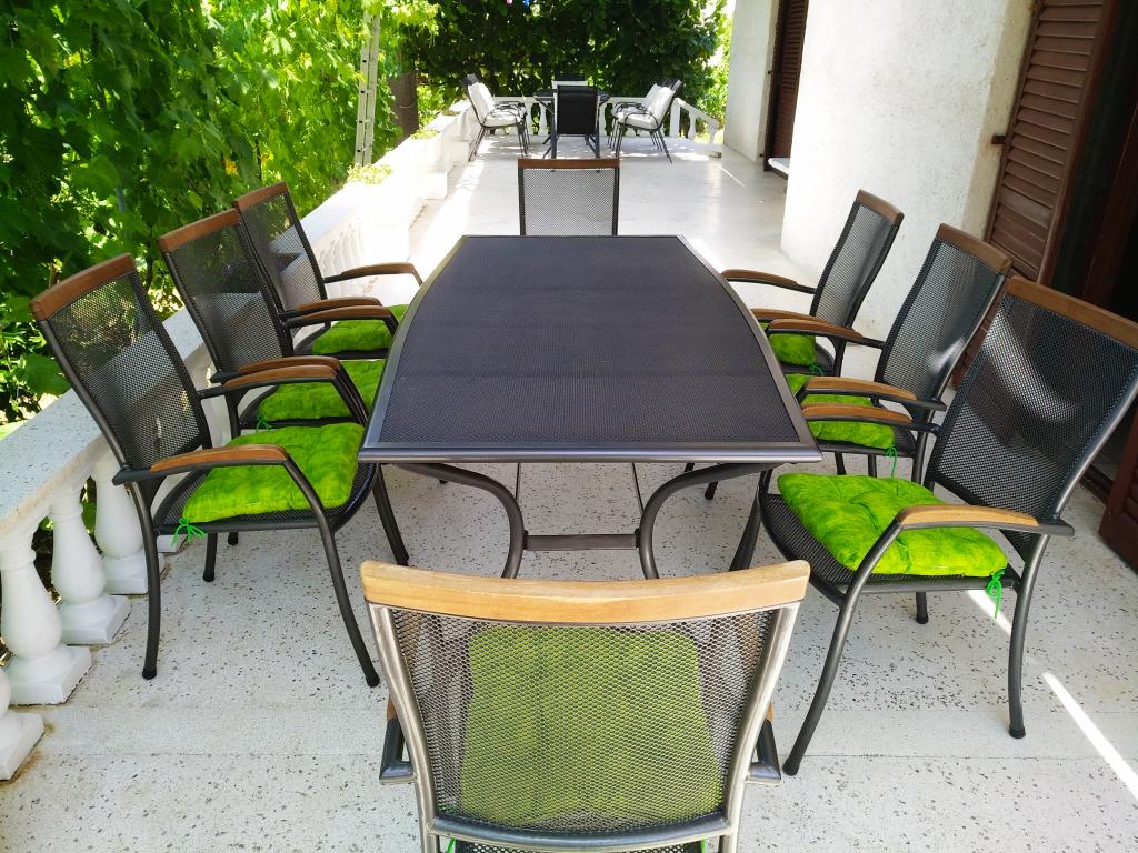 Endroit idéal pour se détendre pendant les grandes familles ou groupes d'amis. Le principal avantage est très grande terrasse ombragée où nous avons passé ensemble tous les soirs. Un grand plus nombreuses salles de bains et une salle à manger spacieuse dans chaque foyer. La maison est équipée avec tout le confort nécessaire. Il est situé dans une rue peu passante calme, à proximité d'une plage propre, tavernes et boutiques. Mais le plus grand avantage de cet appartement est très agréable, gai et accueillant hôtes Marija et Mirko, de sorte que cette année nous avons passé un merveilleux séjour.