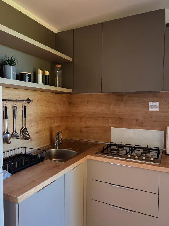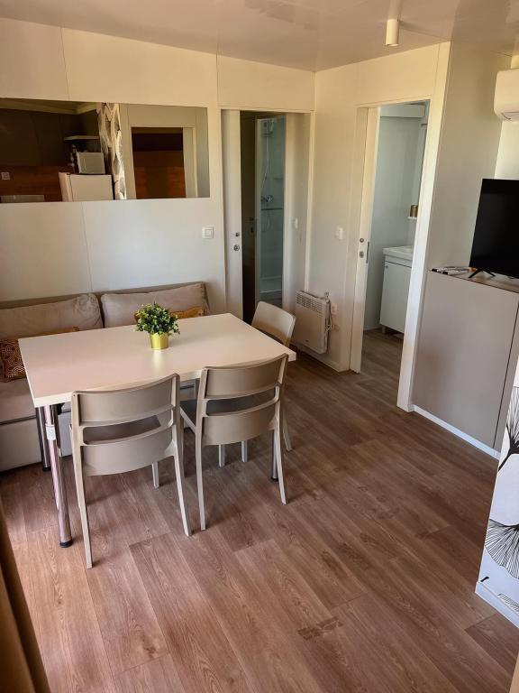 À l'entrée du camping Nin se trouvent des mobil-homes modernes. La terrasse offre une vue sur la mer et la vieille ville de Nin. Le camping est situé à 5 minutes à pied de la plage de Kraljičina et à 10 minutes du centre-ville et de toutes les commodités. Les maisons bénéficient d'un environnement calme et reposant, au milieu des oliviers.