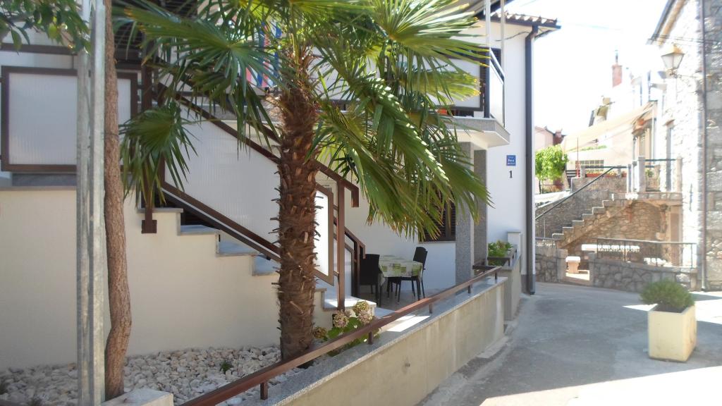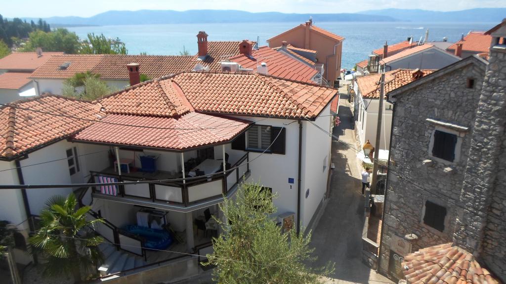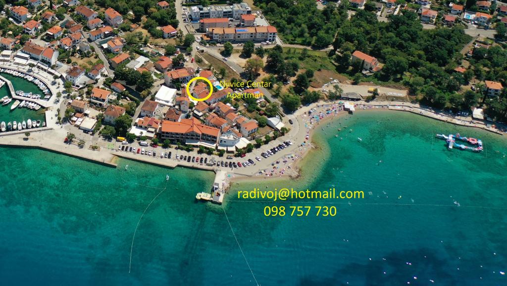 Appartement A4+1 entièrement rénové en plein centre de Njivice, à 50 mètres de la plage principale. Supermarché, bureau de poste et pharmacie à proximité. Terrasse ombragée, parking juste à côté de l'immeuble. Appartement entièrement équipé sans supplément. Appartement accessible aux personnes à mobilité réduite : sans escalier, au rez-de-chaussée.