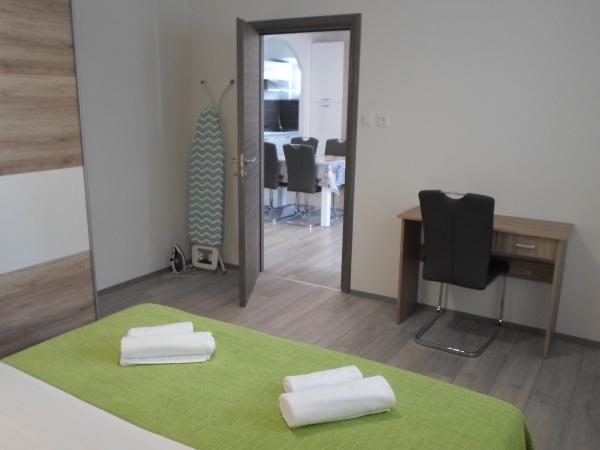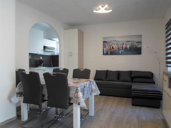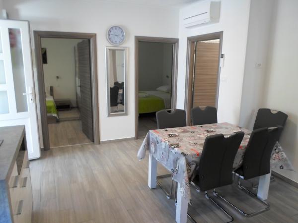 Propriétaires très gentils et amicaux. Ils ont pris soin de tout si nécessaire. Je recommande aux familles avec enfants. L'appartement est neuf, équipé de manière à ce que vous n'ayez pratiquement plus besoin de rien porter. La plage avec des petits cailloux où les enfants peuvent jouer toute la journée est à 50 m de l'appartement, le magasin à 20 m de l'appartement, nous sommes satisfaits et je pense que nous reviendrons.
