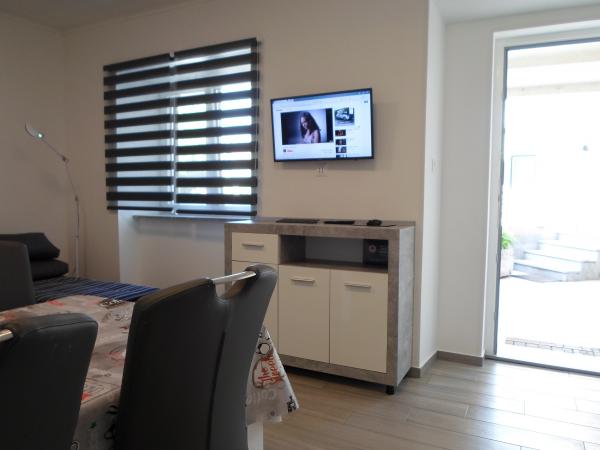 Le plus bel appartement à ce jour, meublé de façon moderne, avec deux chambres à coucher (grands lits confortables et grands placards, yogis confortables), la salle de bain a une machine à laver, la cuisine a aussi beaucoup d'équipement (presque plus qu'à la maison) et un lave-vaisselle. Tous les produits de nettoyage à côté de la vaisselle, du lave-vaisselle et du lave-linge. Propriétaires super sympas - ont acheté un cadeau pour un fils qui avait son anniversaire à cette époque. L'appartement est à quelques pas de la magnifique plage, mais tellement loin qu'il n'y a pas d'agitation. apporté à la terrasse. À 5 minutes se trouvent des restaurants, des pâtisseries avec les meilleures glaces, des stands, mais il n'y a pas ... (Njivice) sont la loi - nous recommandons :)