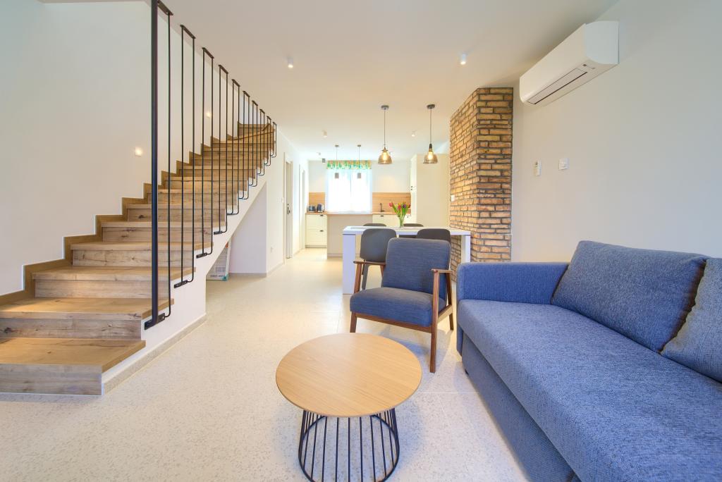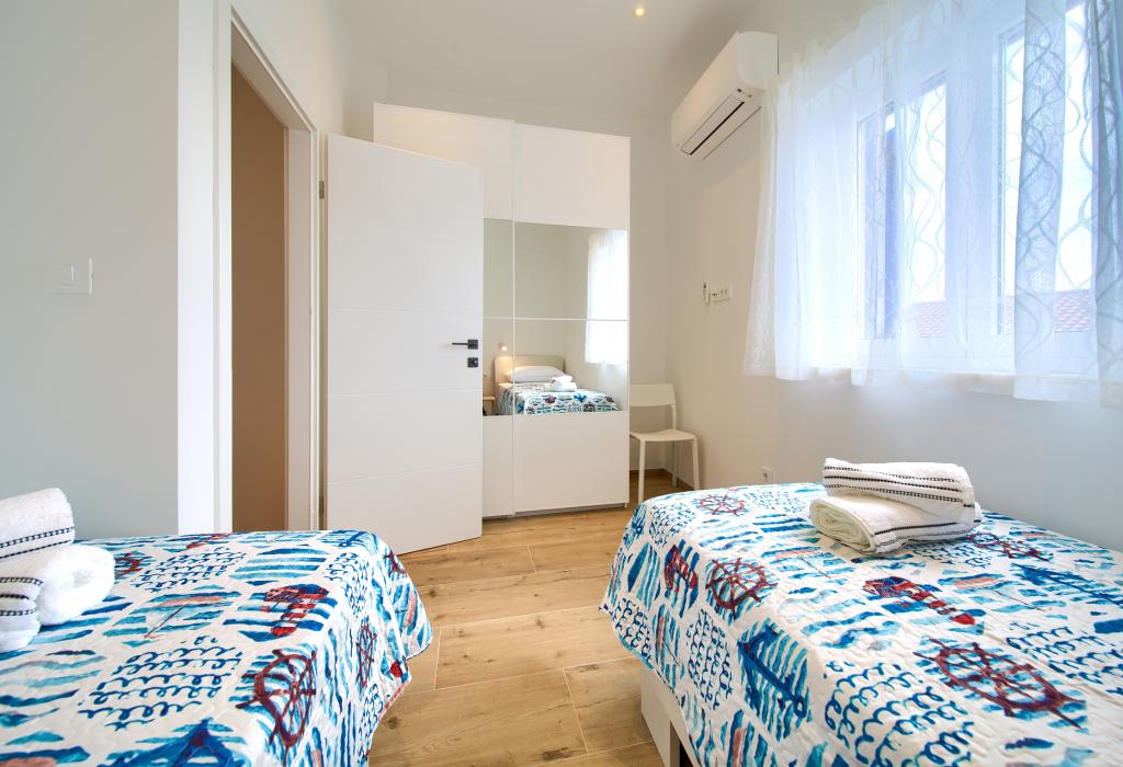Appartements modernes et bien équipés, situés dans un quartier calme, en plein centre-ville. Cet appartement en duplex d'une superficie de 70 m² comprend, au premier étage, deux chambres avec chacune sa propre salle de bain. Au rez-de-chaussée, vous trouverez une cuisine spacieuse ouverte sur un séjour et des toilettes. La propriété se situe à seulement 2 minutes à pied de la plage, des commerces et du centre-ville. Un parking gratuit pour trois voitures est disponible dans la résidence. Les animaux de compagnie sont acceptés sur demande préalable et sous la surveillance constante du propriétaire.