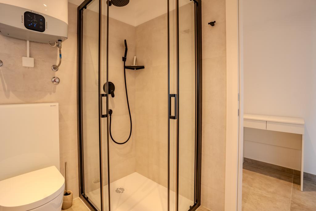 Cet appartement est situé en première ligne face à la mer, à deux minutes à pied de la plage. Entièrement rénové en 2025, il est désormais meublé à neuf. Il comprend une chambre, une salle de bains, un séjour avec cuisine ouverte sur la salle à manger, ainsi qu'une belle terrasse couverte. Sa superficie est de 54 m². Le parking, situé dans la cour de l'immeuble, est gratuit.