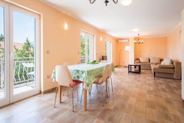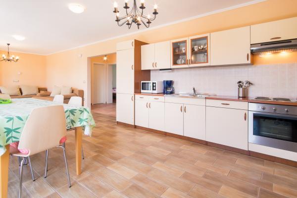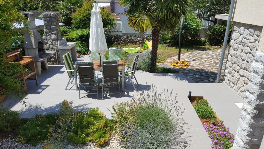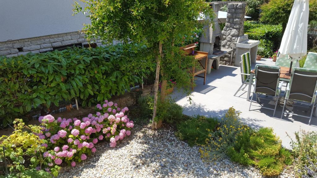 L'appartement est situé dans un quartier calme de Njivice, à 250 m de la mer (3-4 minutes à pied) et à 700 m du centre. Il est entièrement équipé : ustensiles de cuisine, torchons et serviettes sont fournis. Il comprend deux chambres, deux salles de bains, un salon spacieux avec cuisine, un balcon et une terrasse avec barbecue dans le jardin.