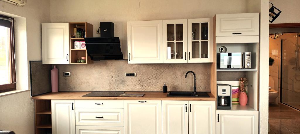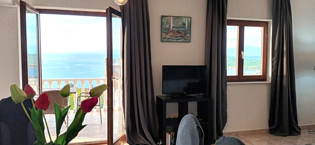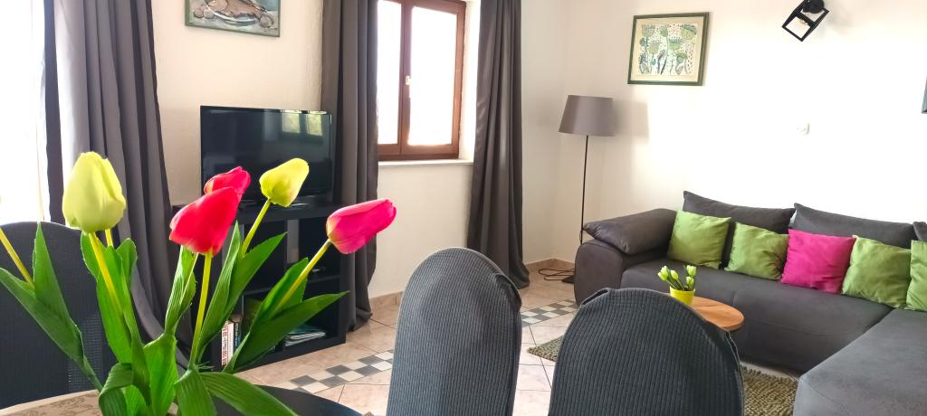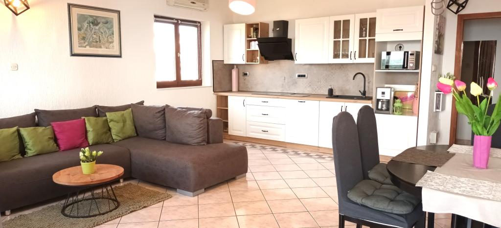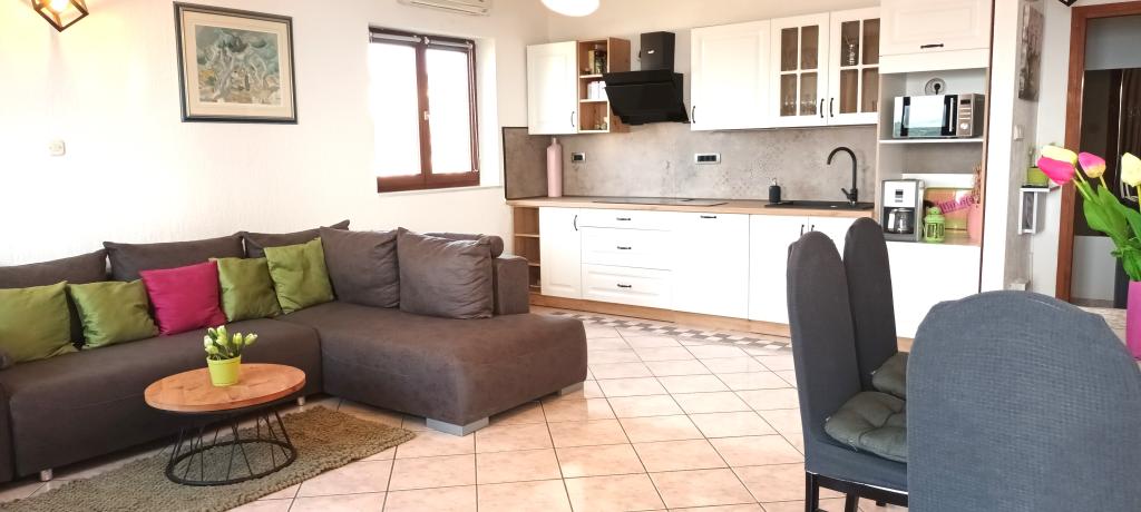OFFRE SPÉCIALE POUR VACANCES SEMAINE (18 -25. 6e) 7 nuits pour le prix de 6 Les appartements sont situés au premier étage de la maison sur la colline surplombant la baie de Kvarner. L'une des plus belles plages de Njivice, se trouve à seulement 5 minutes à pied de la mer. Dans la maison de trois étages est situé à cinq suites, dont chacune a sa propre place de parking. La plus importante est la spécialité de la maison de son grand jardin gazonné, où vos enfants peuvent jouer en toute sécurité pendant que vous préparez le barbecue. Appartement Vista est extrêmement spacieuse, et comme son nom l'indique, vous proposera de profiter de la vue unique sur la mer, sur la grande terrasse natkrirvenoj. Séjour et cuisine sont réparties sur une cinquantaine de mètres carrés dans les tons gris doux rose, chaque pièce de vos couleurs, avec salle de bain privée Appartement Oliva a une petite terrasse où vous pouvez sortir de la salle, un design simple et moderne. Les clients peuvent utiliser la connexion Wi-Fi et sans air conditionné.