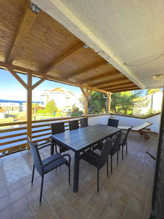 Appartement bien équipé avec trois chambres et un lit supplémentaire dans le salon. Les trois chambres disposent d'un lit double et d'une armoire pour ranger les vêtements. Grand séjour relié à la cuisine. L'appartement dispose d'une grande terrasse avec vue sur la mer. Il est possible d'utiliser un barbecue avec l'appartement. Une place de parking est prévue pour les hôtes dans la cour et à proximité immédiate de l'appartement.