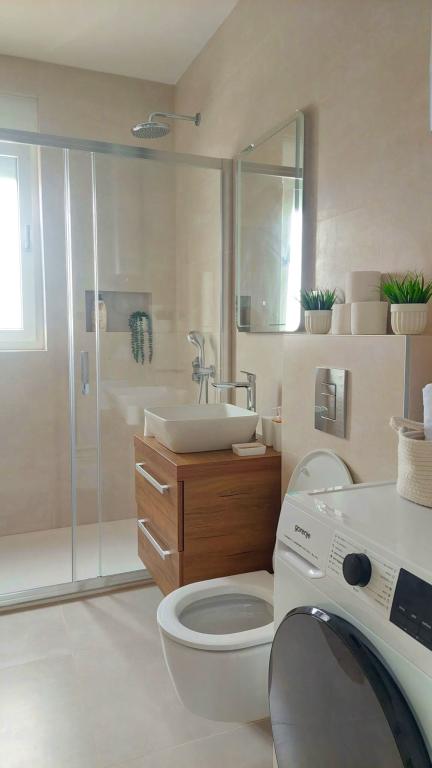 Situé dans un immeuble neuf à Novalja, cet appartement offre une magnifique vue sur la mer. Entièrement meublé avec du mobilier moderne et neuf, il vous garantit un séjour confortable et sans souci. Chaque pièce est climatisée et un chauffage au sol est installé dans tout l'appartement. Vous bénéficierez d'un parking privé et d'une cuisine entièrement équipée pour préparer vos repas. Pour vos loisirs, un paddle et une trottinette électrique sont à votre disposition. La plage se trouve à seulement 350 mètres et le centre de Novalja à 1,5 km. Un commerce est situé juste en face, pour plus de commodité.