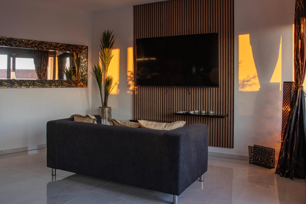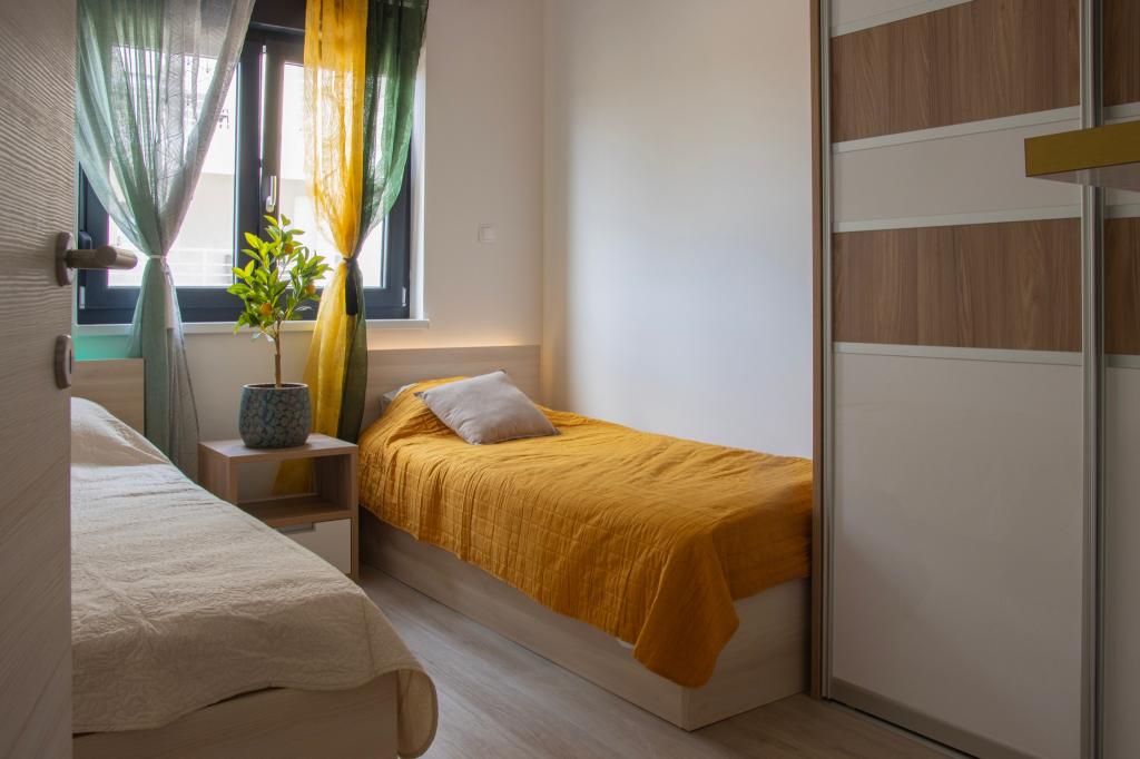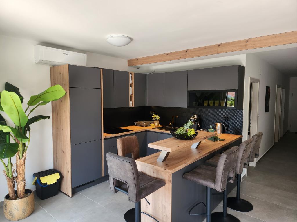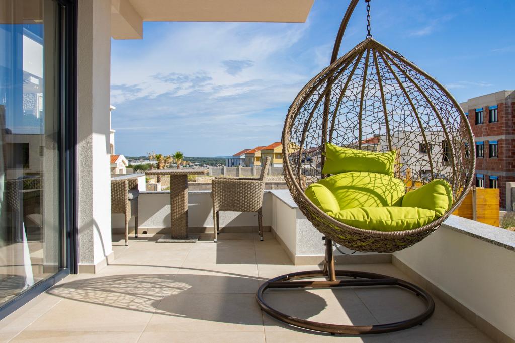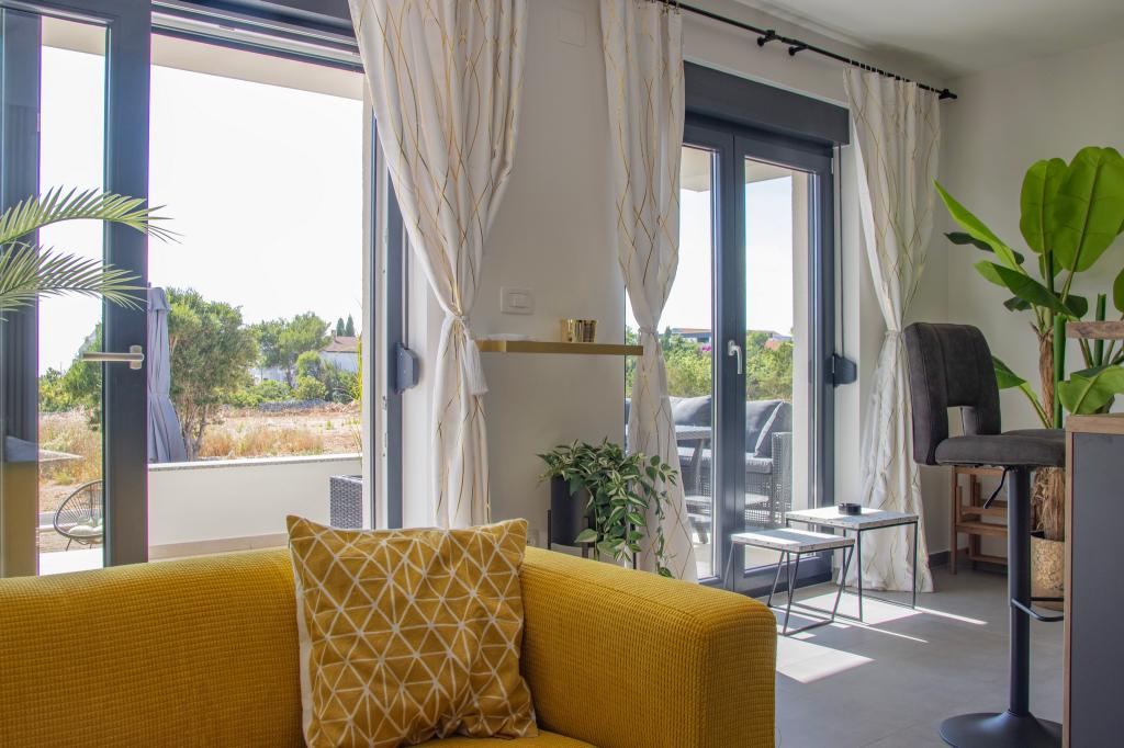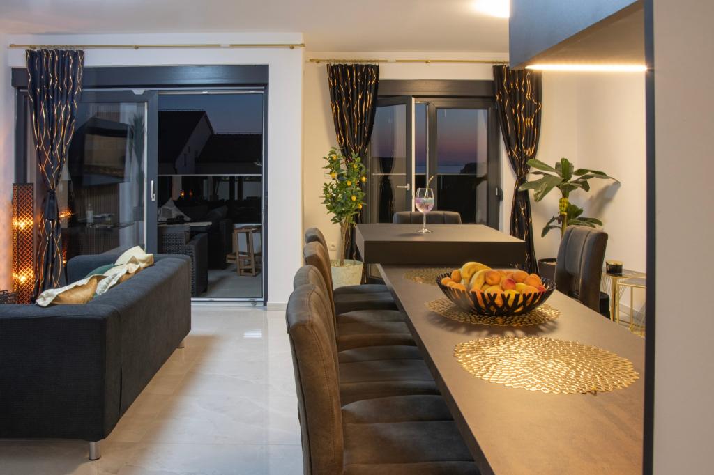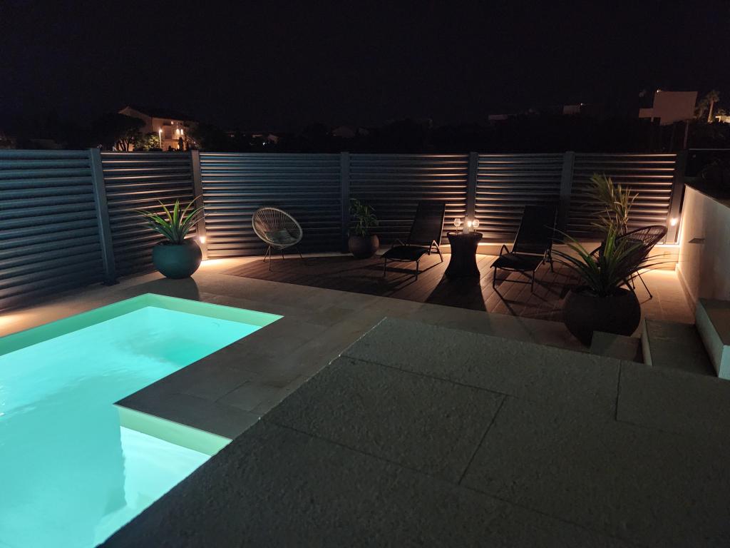Les appartements Calma sont situés dans un endroit calme à Novalja et chaque appartement dispose de sa propre piscine privée. Ils sont à seulement 900 mètres du centre, vous pourrez donc profiter du silence et être proche de toutes les commodités que cette ville a à offrir. À moins de 10 minutes en voiture du festival - 2,4 km du lieu de l'événement. Il y a une navette à la gare routière qui va directement à la plage de Zrće. Les appartements sont situés dans un nouveau bâtiment moderne (avec 8 appartements). Nous vous proposons 2 appartements, dont l'un A4+2 et l'autre A6+4, chacun de ces appartements possède sa propre piscine privée. Chaque appartement est climatisé et dispose d'une connexion Wi-Fi gratuite, d'une télévision par satellite, d'une cuisine équipée, d'un salon, de chambres et d'une salle de bain. Les appartements pour 6 à 10 personnes - plus une personne supplémentaire si nécessaire - ont également toutes les mêmes conditions. Les appartements disposent de belles terrasses ou balcons donnant sur la mer et la ville, équipés de meubles d'assise.