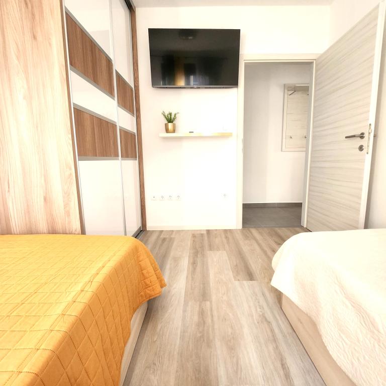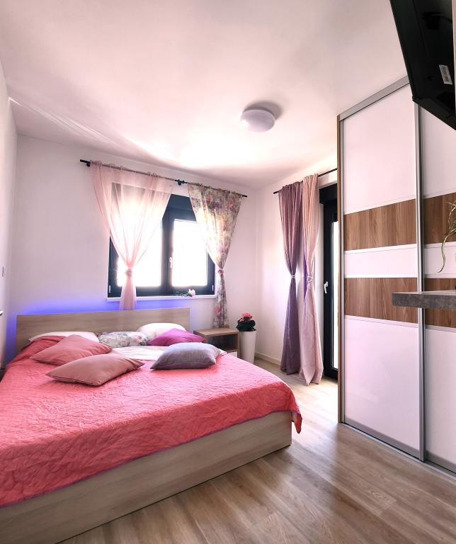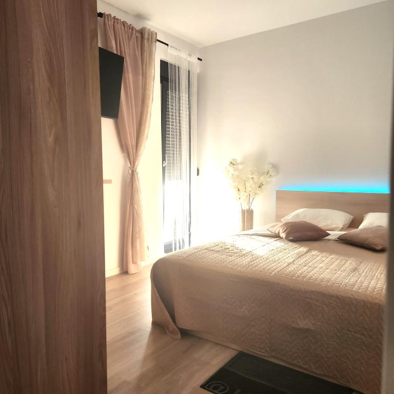 Taxe de sejour est inclus dans le prix.Possibilité de transfert de l'aéroport de Zadar à Novalja. Le prix de l'appartement comprend la taxe de séjour ainsi que l'utilisation de la climatisation, d'internet et du parking dans notre cour avec possibilité de chargeur électrique. Les appartements peuvent être utilisés pendant moins de 3 jours, avec une majoration de prix de 30%. Nous mettons gratuitement à disposition de nos hôtes une machine à laver et un fer à repasser avec support. Nous avons toujours accordé une attention particulière au maintien de la propreté et de l'ordre de nos appartements et du jardin, le linge de lit et les serviettes étant lavés à la température maximale (90-95°C) et devant être repassés.