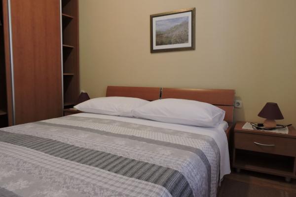 Les appartements Ivanov sont situés rue Ivana Palčića à Novalja, à 850 m du centre-ville et à 950 m de la plage la plus proche. Des commerces se trouvent à 700 m, un restaurant à 250 m, la poste à 950 m et une banque à 900 m. L'arrêt de bus est à 300 m. Les appartements offrent une vue sur l'Oliveraie. Modernes et entièrement équipés, ils comprennent la télévision par satellite, la climatisation et une connexion Wi-Fi. Un parking gratuit est disponible devant l'établissement. De nombreux clients ont attribué la note de 9,4 à leur séjour aux appartements Ivanov. Un médecin et une pharmacie se trouvent à 300 m des appartements Ivanov. Les trois studios comprennent : un couloir avec une armoire, une salle de bains avec douche et lavabo, du savon, du shampoing et un sèche-cheveux. La chambre est équipée d'un lit double. Le séjour dispose d'une cuisine équipée, d'une télévision et de la climatisation. Le balcon est meublé d'un salon de jardin, d'une table et de chaises. L'appartement deux chambres comprend deux chambres, deux balcons, une salle de bains, un couloir et un séjour avec cuisine.