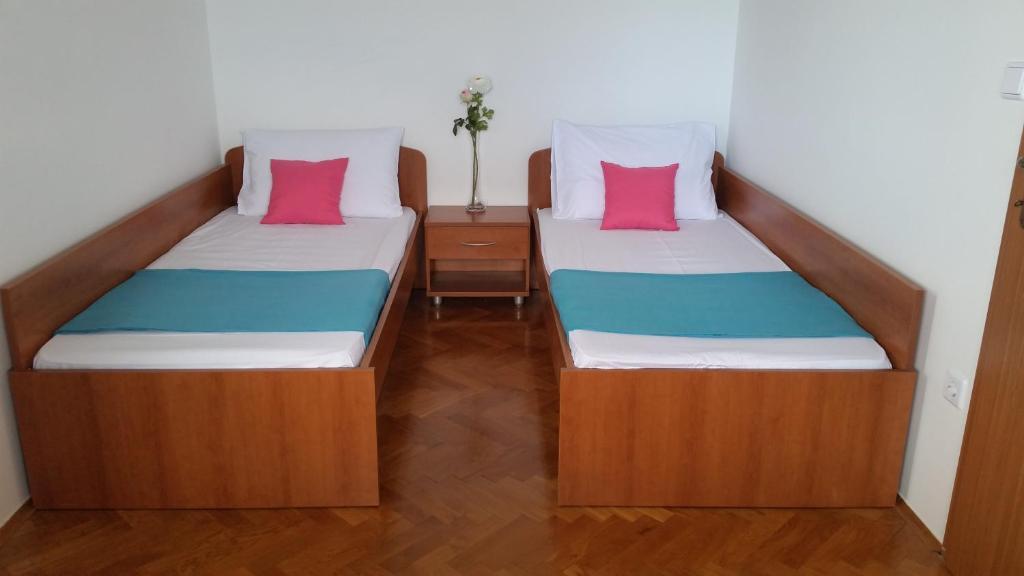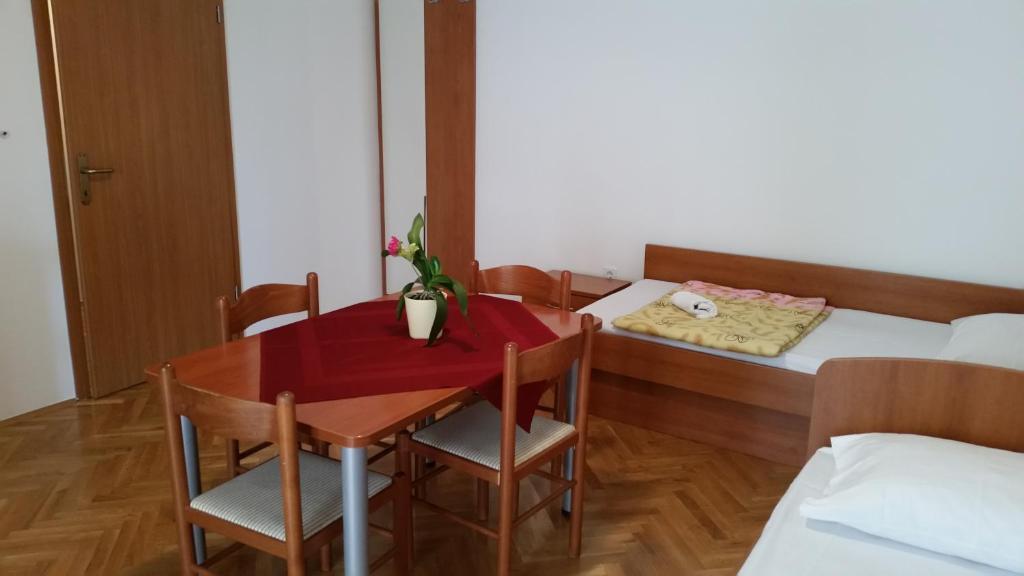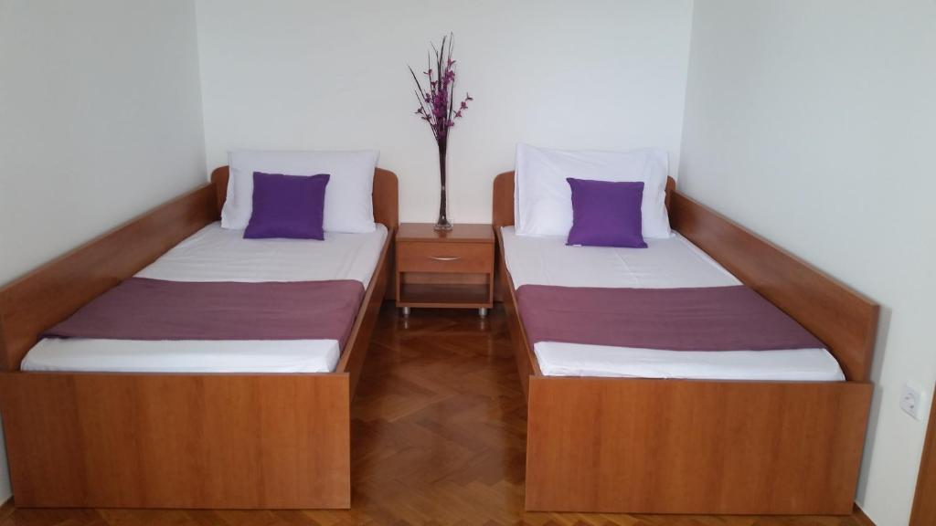 Chers invités, bienvenue sur le site où nous présentons notre offre d'hébergement et l'offre de la ville de Novalja. Nous vous proposons 5 appartements et 3 studios. Chacun d'eux est équipé d'ustensiles de cuisine complets, de serviettes et de linge de lit, et sur accord, un barbecue est également disponible. La maison est située à 5 minutes à pied du centre et de la plage. Il y a des magasins et des restaurants à proximité du bâtiment et les appartements se trouvent à 500 m du centre de Novalja. Tous les appartements disposent d'une télévision avec programmes satellite et de la climatisation. Novalja - le centre touristique de l'île de Pag, une station estivale célèbre et une destination pour de nombreux touristes, offre la possibilité de vacances actives et significatives. La beauté naturelle de Novalja est particulièrement évidente dans ses belles plages - Zrće, Caska, Straško, Babe, Trinćel, Braničevica et Vrtić. - Les enfants bénéficient d'une réduction sur le prix de l'hébergement. - Enfants jusqu'à 12 ans = 0,00 € sur un lit supplémentaire. Les lits d'appoint sont enregistrés uniquement pour les enfants.