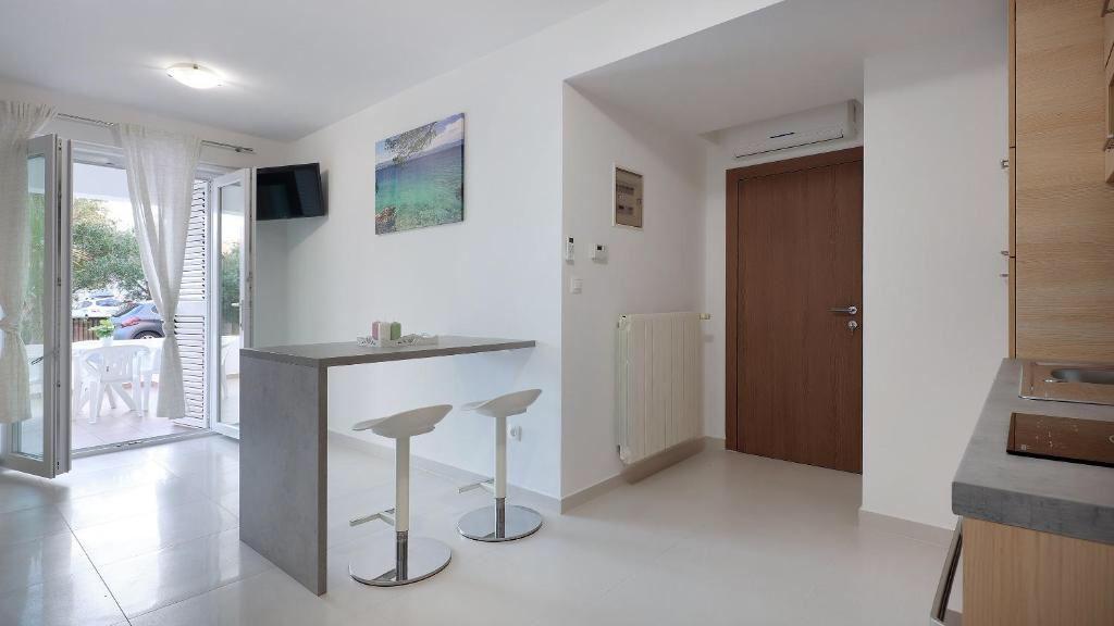 Chers invités, bienvenue sur le site où nous présentons l'offre d'hébergement dans nos appartements. Les appartements Optima sont des appartements équipés de façon moderne, entièrement rénovés en 2021. Les appartements disposent de lits standard et les cuisines sont entièrement équipées d'ustensiles de cuisine complets. Les appartements disposent d'un parking sécurisé, d'une connexion Wi-Fi, d'une télévision, de la climatisation et l'équipement standard comprend des serviettes et du linge de lit. Les appartements sont situés à 5 minutes à pied du centre et de la plage. Il y a des magasins et des restaurants à proximité du bâtiment et les appartements se trouvent à 500 m du centre de Novalja.