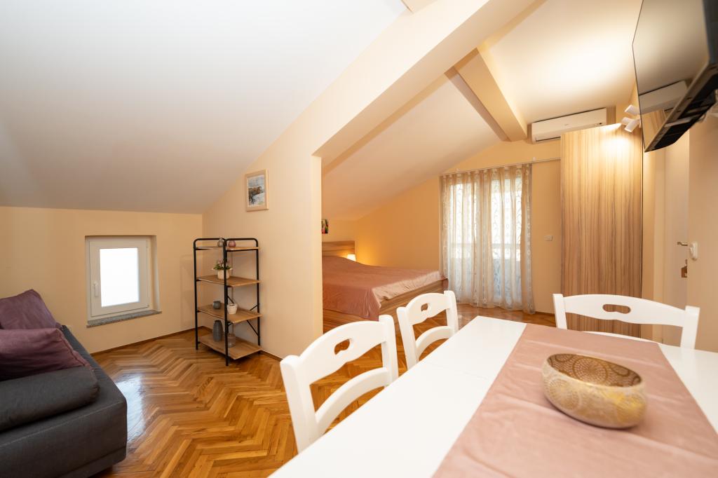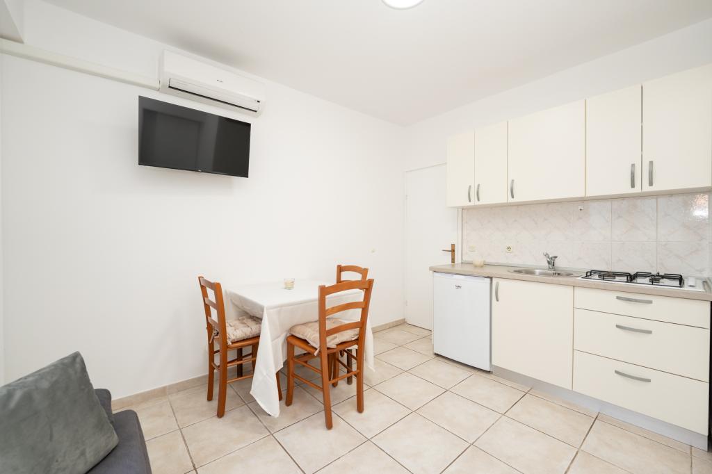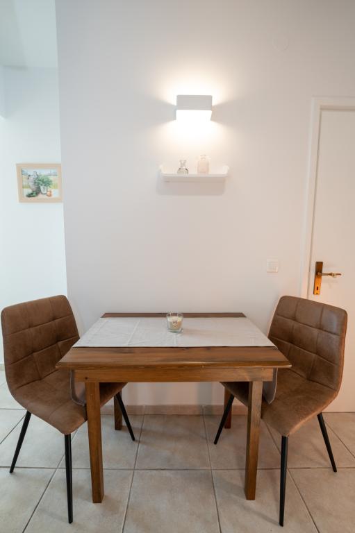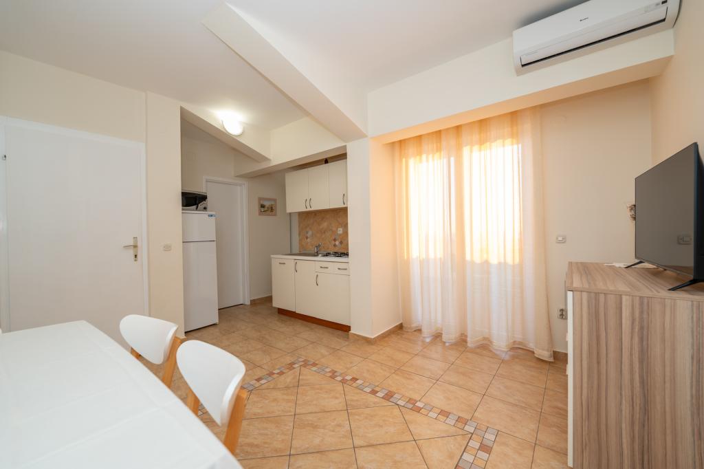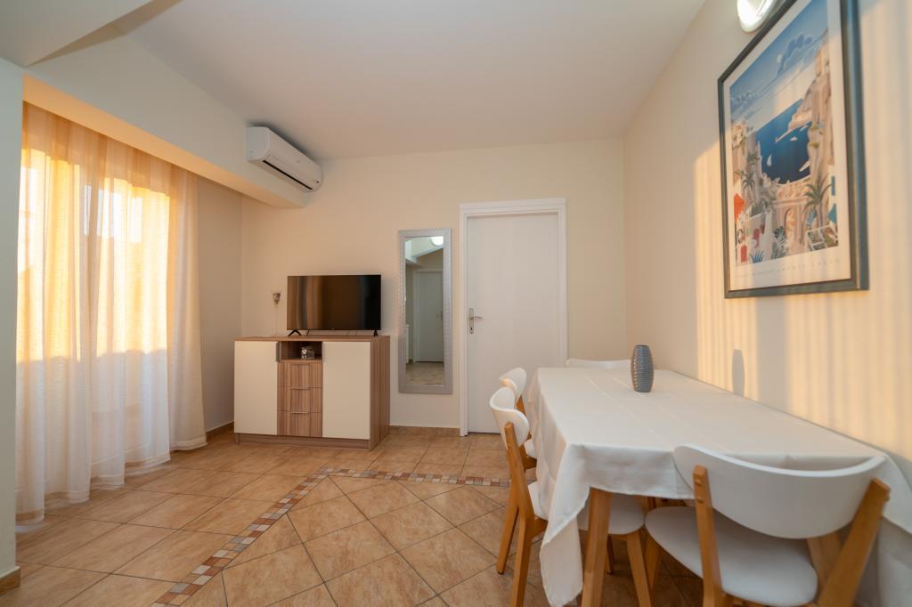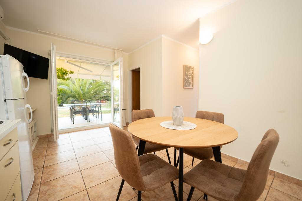 Très bien situé, un peu à l'écart de l'agitation de la ville, les propriétaires sont super, discrets. L'appartement a une entrée séparée, devant la maison il y a une grande cour avec transats et aires de jeux pour enfants, et la mer est très proche.