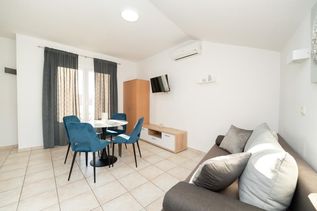Grands appartements, bien équipés. Un grand avantage est le jardin et l'aire de jeux où les enfants peuvent jouer. Les appartements sont situés très près de la mer, ce qui est un gros plus pour les enfants. Quartier calme, à environ 20 minutes à pied du centre-ville qui grouille de vie. L'hôte est cordial et serviable. Je le recommande en toute bonne conscience et j'espère que nous y reviendrons un jour.