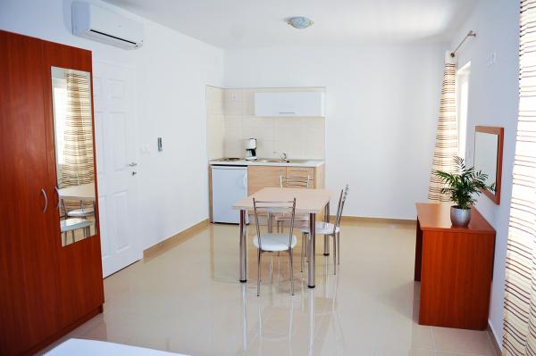 Taxe de sejour est inclus dans le prix.- Les studios sont climatisés et disposent de signaux Wi-Fi disponibles. Ils sont situés près du centre de Novalja, à 100 m de la mer. Dans l’une des pièces se trouve une cuisine équipée et un lit double (lit double). Chaque studio dispose d'une salle de bains avec toilettes et douche. Dans les environs immédiats il y a une plage de la ville et des restaurants. Chaque studio dispose d'une place de parking sécurisée. La gare routière de la ville est à 200 m. - Le bungalow est une installation séparée ou une petite maison proche du centre et avec vue sur la mer. Il a sa propre terrasse et place de parking. Le bungalow est équipé de la climatisation et un signal Wifi est disponible. L'hébergement dans un bungalow peut accueillir trois personnes.