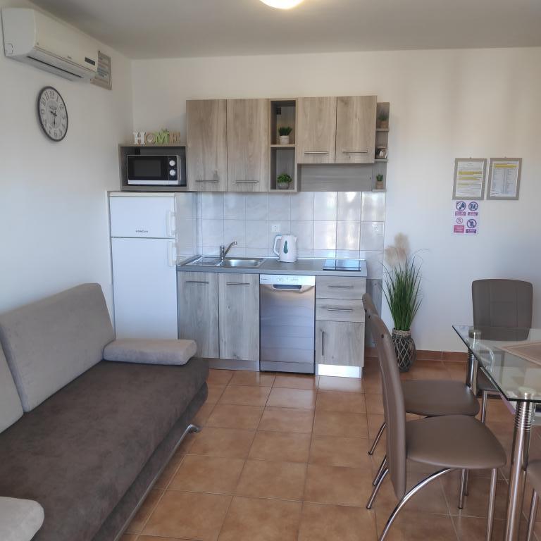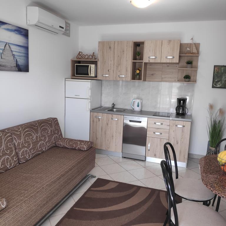 La Villa Petra & Sanja (Villa avec piscine) est située à NOVALJA sur la belle île de PAGU, située au milieu d'un jardin, entourée d'oliviers et de palmiers. Les clients ont accès à une piscine extérieure, à l'utilisation d'un barbecue, à une connexion Wi-Fi gratuite, à une place de parking, à des chambres confortables et meublées de façon moderne. Tous les appartements climatisés comprennent un balcon avec un coin salon, une cuisine entièrement équipée et une salle de bains. Tous les appartements disposent d'un four à micro-ondes, d'un lave-vaisselle et d'un lave-linge. 6 appartements d'une ou deux chambres sont disponibles à la réservation. À seulement dix minutes à pied de la plage de sable et de la promenade côtière qui mène au centre de Novalja. D'autres belles plages de sable, de galets et de rochers sont les plus belles de l'Adriatique et ne sont qu'à quelques minutes en voiture. La station de taxis est à 10 mètres du bâtiment. La célèbre plage de ZRĆE est à proximité.