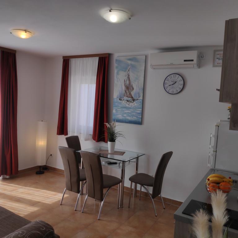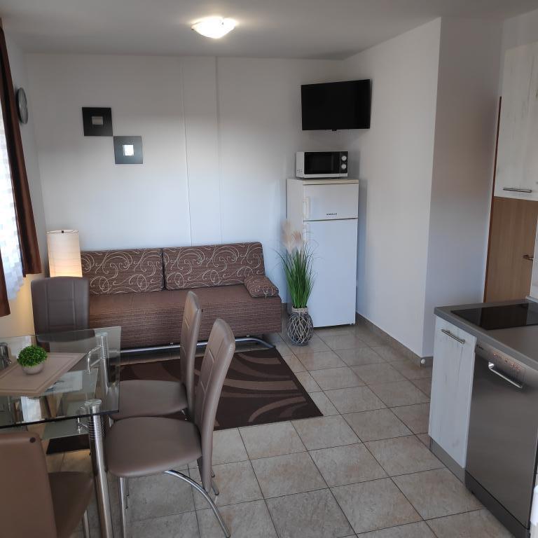 En savoir plus Unités d'hébergementAprès votre demande, nous vous envoyons une OFFRE avec notre numéro de compte bancaire. Pour effectuer une réservation, il est nécessaire de verser 25% du montant total de l'hébergement sur notre compte. Après paiement, nous envoyons la CONFIRMATION DE RÉSERVATION. Le reste du montant est payé en espèces à l'arrivée à l'appartement. La taxe de séjour est incluse dans le prix. Un dépôt de garantie d'un montant de 250,00 EUR doit être payé à l'arrivée. Ces frais seront facturés en espèces et seront entièrement remboursés s'il n'y a aucun dommage, après inspection de l'appartement au moment du départ. L'entrée dans l'appartement se fait après 14h00 et le départ avant 10h00.