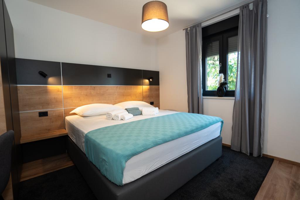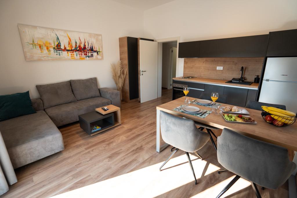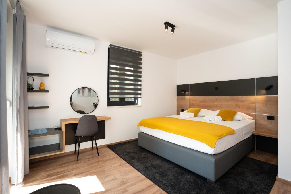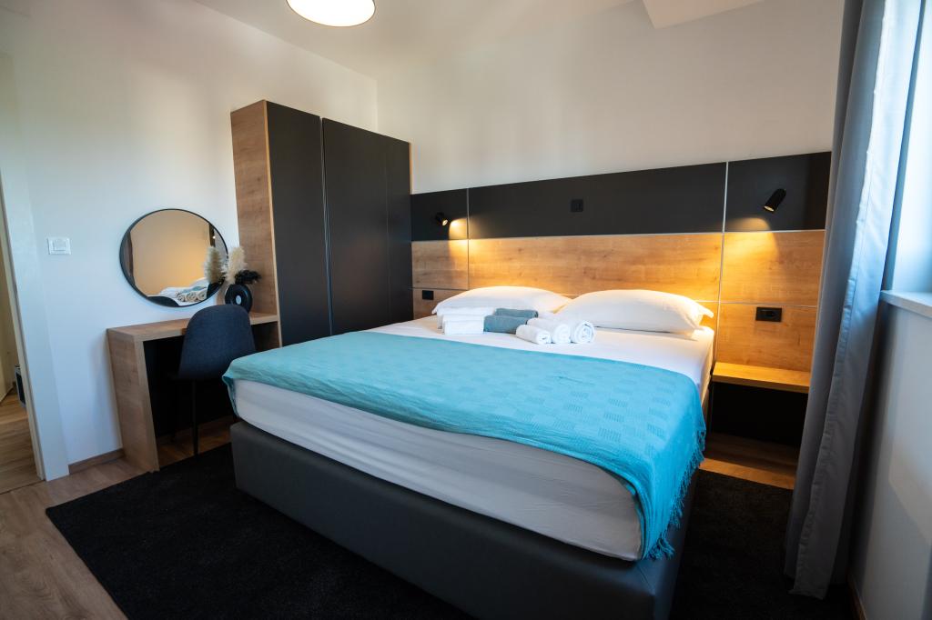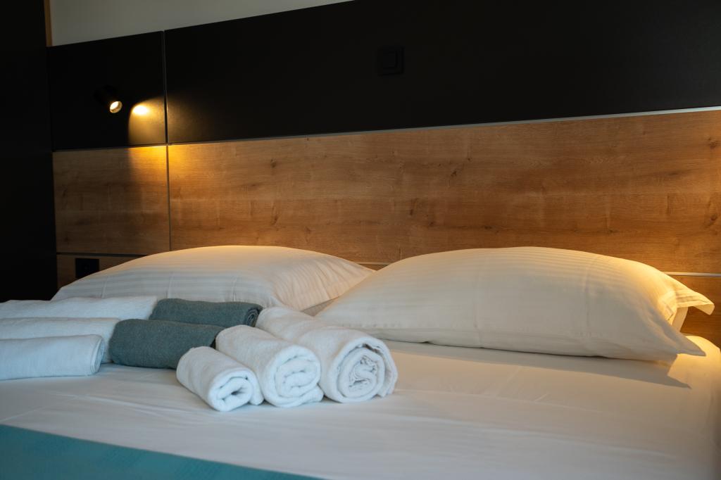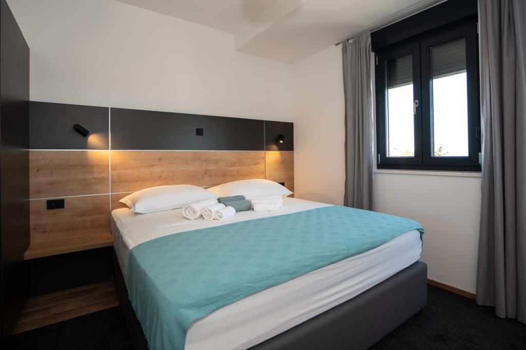 Profitez du confort et de l'élégance de nos chambres modernes et de nos appartements haut de gamme. Tous les hébergements sont classés 4 étoiles et équipés selon les normes hôtelières avec un mobilier soigneusement sélectionné et des équipements de qualité. Idéal pour les voyages d'affaires, les vacances en famille ou la détente estivale : votre séjour parfait à Novalja commence ici ! I 4 étoiles : une garantie de qualité I Équipement et design modernes I Appartements d'une chambre I Deux lits d'appoint dans le salon spacieux I Wi-Fi gratuit I Parking privé Réservez dès maintenant et découvrez un confort ultime ! REMARQUE : Les lits d'appoint dans le salon ne peuvent être utilisés que par des enfants de moins de 12 ans.