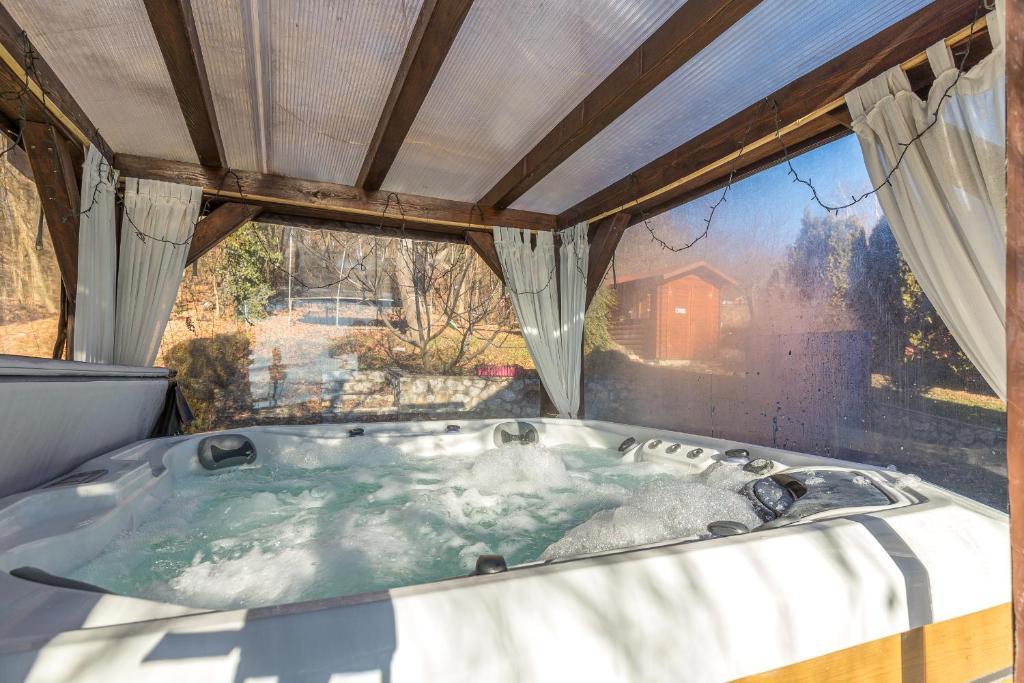 Le Pool House Milk And Honey - Happy Rentals est situé à Novi Marof et propose un hébergement climatisé avec une terrasse et une connexion Wi-Fi gratuite. Cette maison de vacances dispose d'une piscine privée, d'un jardin et d'un parking privé gratuit. Cette maison de vacances comprend une console de jeux, une cuisine avec réfrigérateur, lave-vaisselle et four, un séjour avec coin salon et coin repas, 4 chambres et 2 salles de bains avec douche et baignoire. Les serviettes et les draps sont inclus dans le gîte