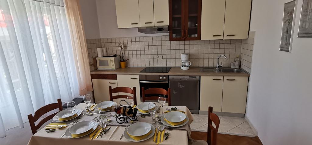 Appartement entièrement équipé de façon moderne dans un quartier calme de Novi Vinodolski, à 5 minutes à pied du centre-ville et à 5 minutes à pied de la plage principale. Maison avec jardin, jardin, grande terrasse et deux grands balcons avec vue mer. L'appartement dispose de deux places de parking gratuites. Dans la cour de l'appartement, les hôtes ont à leur disposition un barbecue. Il est climatisé et chaque chambre dispose de la télévision par satellite.