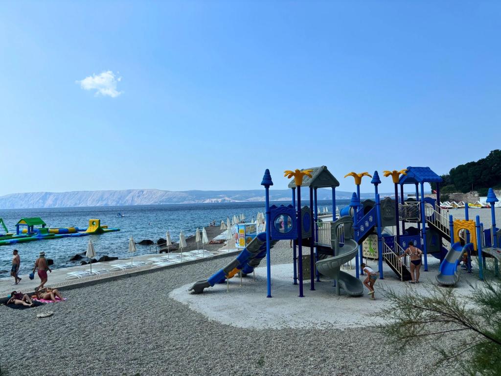 L'appartement est situé au premier étage d'une maison familiale dans un quartier calme de la ville, avec une terrasse au rez-de-chaussée et une vue sur la mer et l'île de Krk. À seulement quelques minutes à pied (3-5) de la plage de la ville. Il se trouve à 200 mètres du centre ville et du marché. A proximité des restaurants, commerces et installations de divertissement et sportives. Parking sécurisé, TV SAT, Wi-Fi. Les clients de l'appartement disposent d'un barbecue et d'un coin repas dans le jardin.