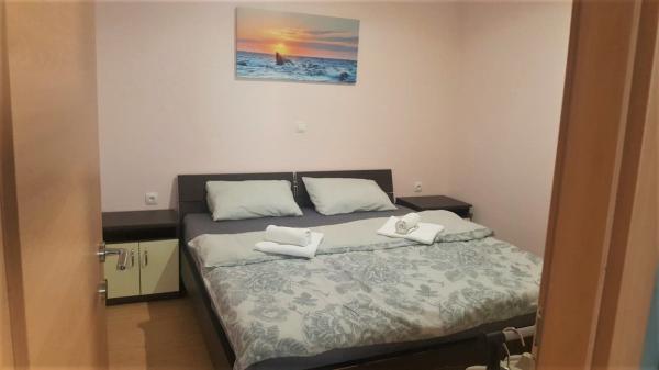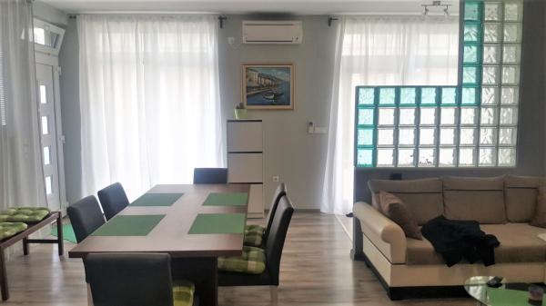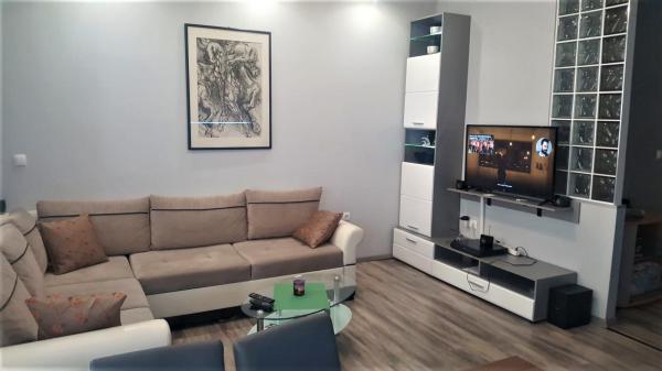 Taxe de sejour est inclus dans le prix.Une boisson de bienvenue est incluse dans le prix. L'appartement est climatisé et équipé d'une télévision connectée et d'un home cinéma dans le salon, avec connexion Wi-Fi, ainsi que d'une cuisine moderne. Cet espace commun de 35 m², sans cloisons, composé d'un salon, d'une cuisine avec coin repas, d'une loggia et d'un couloir, peut accueillir confortablement jusqu'à 6 personnes simultanément. La chambre est équipée d'un grand lit et d'une armoire, tandis que la chambre des enfants comprend deux lits séparés et une télévision. Le canapé-lit du salon, une fois déplié, peut accueillir deux personnes. La salle de bains est équipée d'un lave-linge, d'un radiateur et d'un chauffe-eau instantané moderne, permettant de doucher plusieurs personnes à la suite. Un débarras de 4 m² est également disponible pour ranger les affaires superflues.