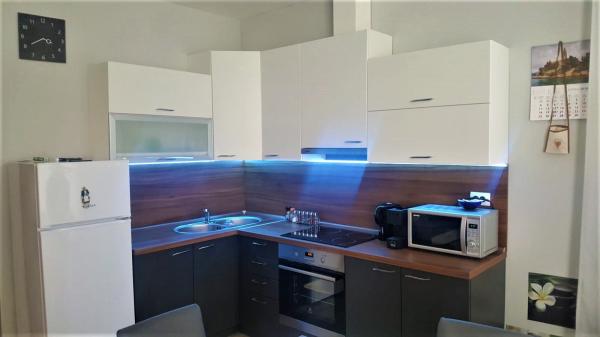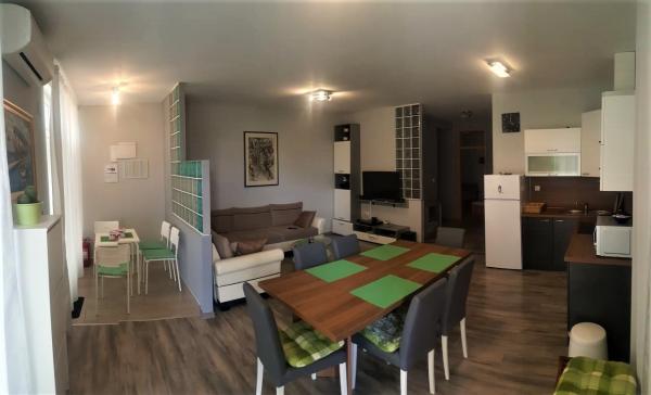 Appartement récemment décoré et équipé de façon moderne, situé dans un quartier calme et plat de Novi Vinodolski, au rez-de-chaussée d'un immeuble de trois étages, près de la mer et du centre-ville. Il est situé dans la résidence HIT-MARINA, à 10 minutes à pied du centre et à 5 minutes de la première plage. Commerces à proximité : 1. Gavranović (30 m), 2. Supermarché Lidl (50 m), 3. Marché Tomy (200 m), 4. Plodine (230 m). Le premier café-bar avec terrasse est à 10 m. À seulement 1 km se trouvent une taverne, un grand vignoble avec une salle de dégustation de vins de qualité, un restaurant et une boutique de vins et autres produits gastronomiques locaux. L'arrière-pays de Novi Vinodolski offre de nombreuses possibilités de randonnées pédestres, cyclistes avec des sentiers aménagés, des points de vue, du tourisme rural et des balades à cheval. Outre de nombreux restaurants, un centre de bien-être et de spa à proximité, ainsi qu'une plage aux eaux cristallines, sans oursins ni algues, la ville offre une longue promenade. Outre des terrains de sport classiques, la ville dispose également d'un club de plongée. Les villes de Selce et Crikvenica sont à seulement 6 km, tandis que l'île de Krk et son aéroport sont à 35 km.
