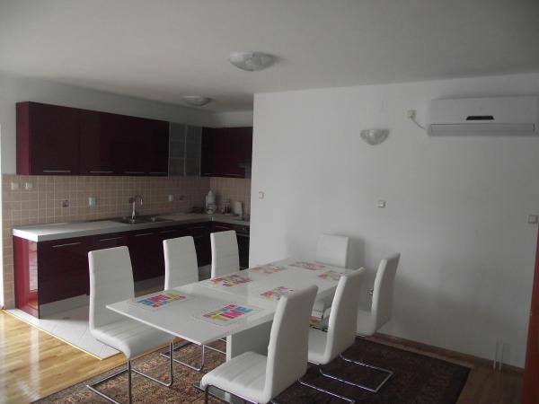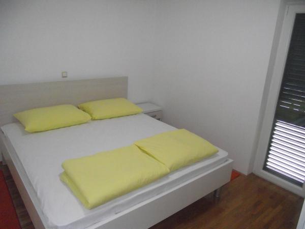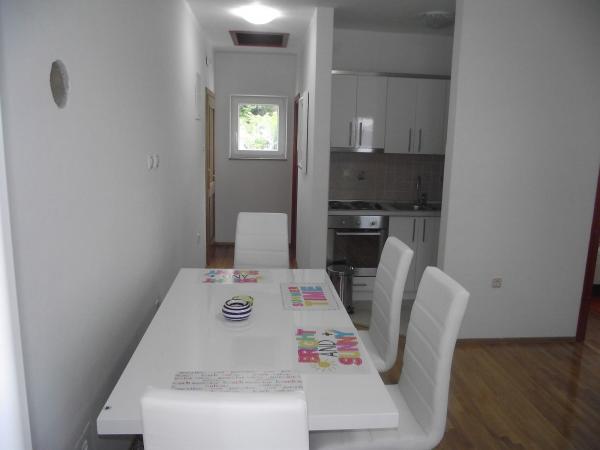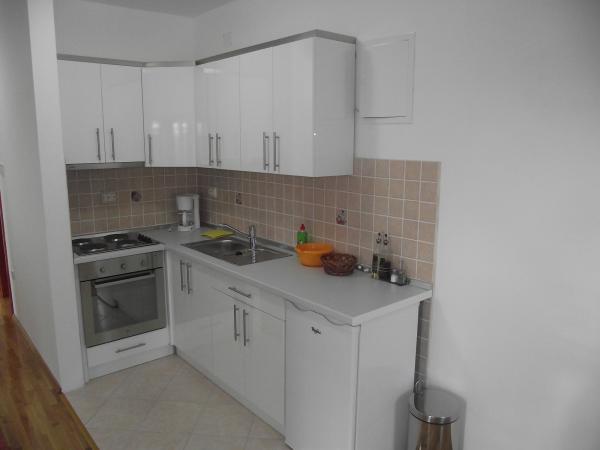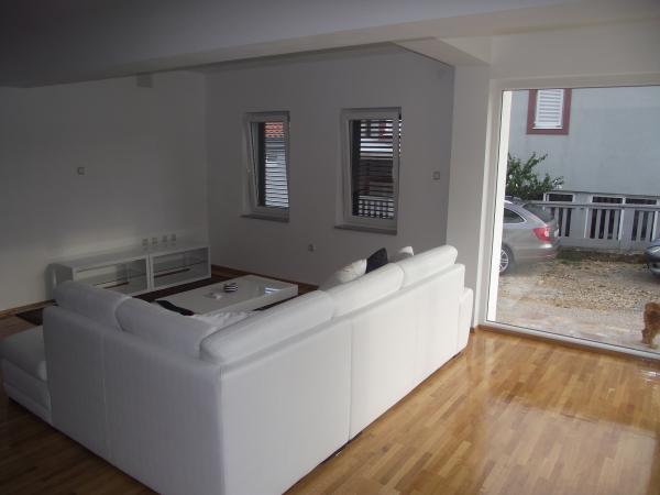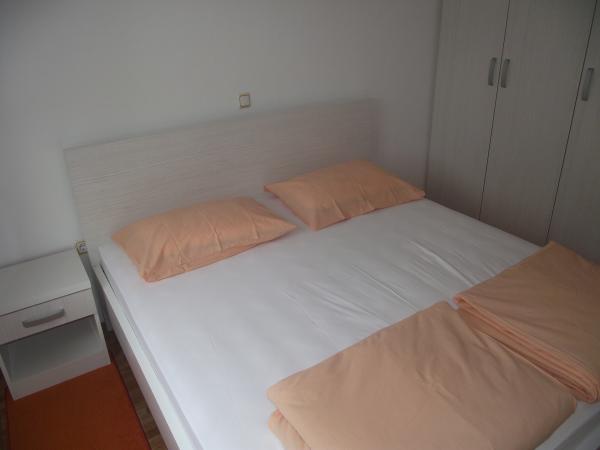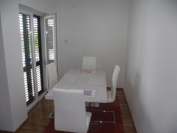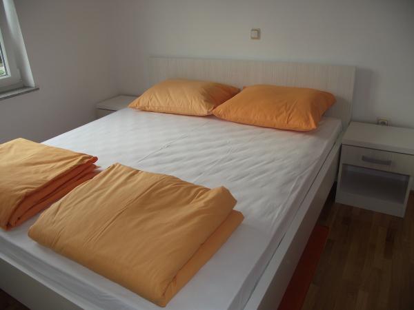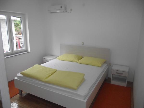 Nous vous proposons une maison récemment rénovée avec trois appartements climatisés. Au rez-de-chaussée se trouve un appartement de deux chambres pouvant accueillir jusqu'à 6 personnes. A l'étage se trouvent deux appartements d'une chambre et chacun peut accueillir 4 personnes. Dans la cour, il y a un endroit pour s'asseoir et socialiser, et un barbecue. La maison est située à l'entrée de Novi Vinodolski en direction de Rijeka, et est située très près du complexe d'appartements Novi Resort. Il est à 200 mètres de la mer et à 200 mètres du premier commerce.