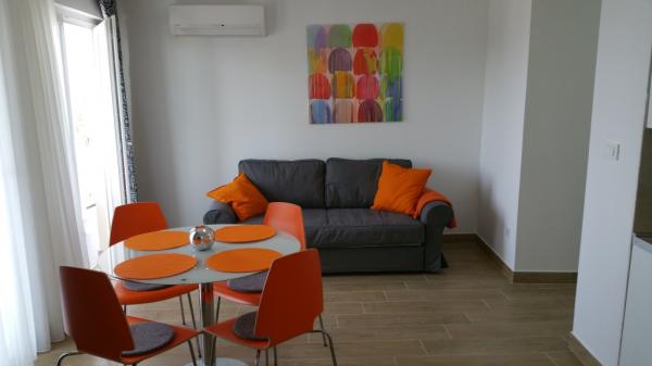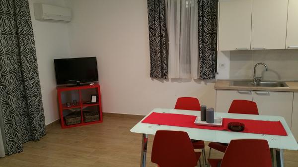 Appartements récemment rénovés et équipés de façon moderne situés le long de la route près de la mer et à une centaine de mètres du centre. Les appartements disposent de balcons donnant sur la mer. Les appartements disposent du Wi-fi, TV écran plat, TV satellite, climatisation inverter. La distance à la plage est de 100 m et diffère du sable, des rochers, des galets et du béton.