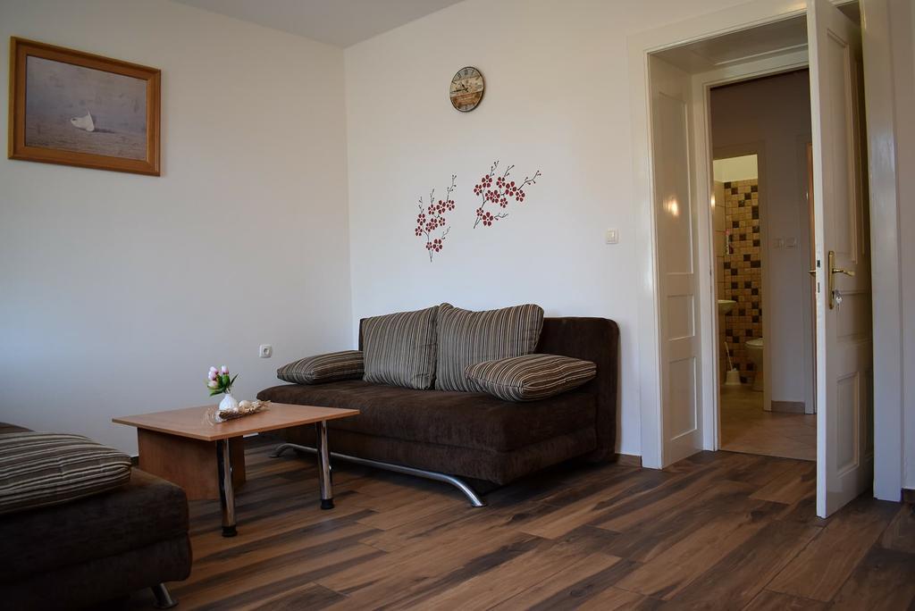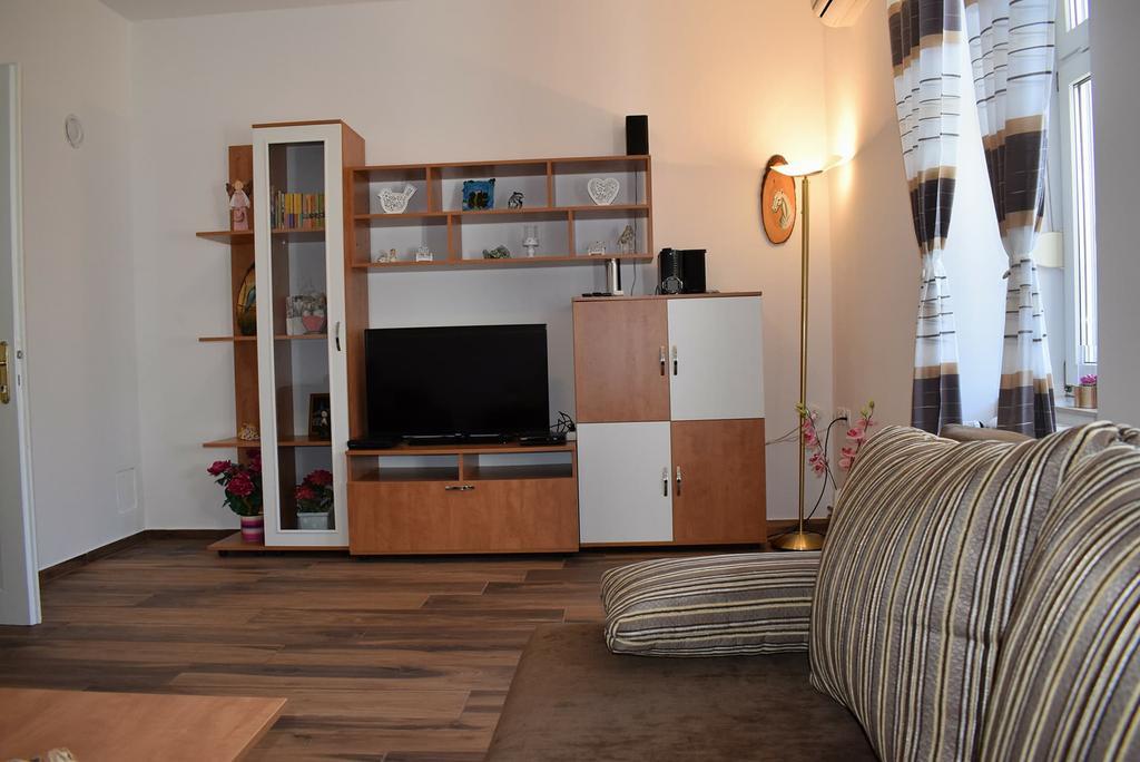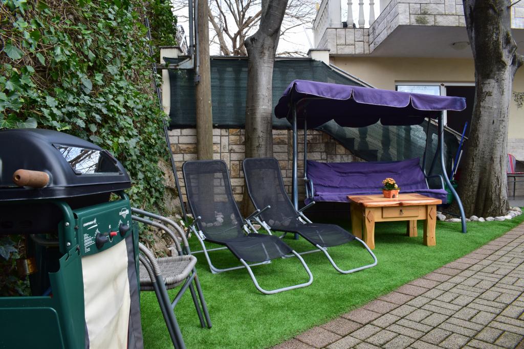 Nous avons passé dans cet appartement de 10 jours. Tout atteint nos attentes. Très gentil et serviable propriétaire Mme Zana, très propre, bonne cuisine équipée, salle de bains et les chambres. Chaque chambre dispose d'une climatisation et d'une télévision séparée. Beau jardin avec un bon équipement pour les enfants (basket-ball, tennis de table, mini-portes de football et d'autres), place pour le barbecue et assis dehors. L'appartement est situé à seulement 5 minutes à pied du centre de la ville avec des restaurants et des magasins et une minute à la boulangerie et de la mer. Nous recommandons cet appartement aussi fantastique. Nous reviendrons ici pour 100%. Merci.
