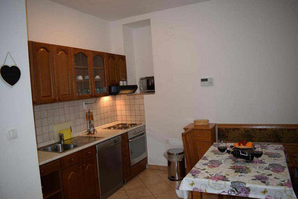 Nous étions 4 adultes avec 2 petits enfants dans l'A3+2 et nous étions très satisfaits. Le propriétaire Zana est très sympathique, gentil, arrangeant et serviable. Elle aime parler à ses invités et les fait se sentir les bienvenus. Dans l'appartement, il y a tout ce dont vous avez besoin pour vos besoins quotidiens. Un micro-ondes, une cafetière, une bouilloire, une cuisinière, un four, une planche à repasser avec fer et un sèche-cheveux. Un autre avantage est qu'il y a un lave-vaisselle et une machine à laver. L'appartement dispose également d'une grande terrasse, où vous pourrez prendre le petit déjeuner le matin ou le soir avec un gril à gaz, également disponible pour les grillades. Un hamac pour se détendre est également disponible sur la terrasse. Un grand parking pour plusieurs auteurs se trouve directement à la maison. L'emplacement de l'appartement est également excellent. Parce que tout est accessible à pied, comme la plage et le centre ville avec tous les restaurants et commerces. Des magasins tels que Lidl, Konzum et dm sont également accessibles à pied. Une petite boulangerie pour le pain quotidien se trouve juste de l'autre côté de la rue. Une station-service se trouve également à proximité immédiate. Tout dans un super appartement, très bien situé, des propriétaires sympathiques et des vacances reposantes.