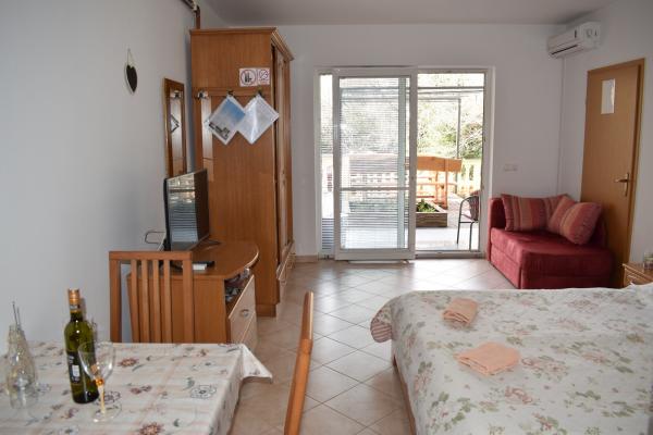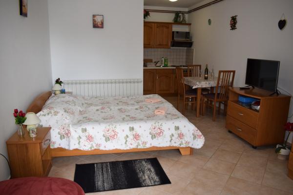Avant nous avons décidé de réserver, nous étions skleptični car l'image est toujours décevant. À quelques reprises nous avons été de décider si de choisir cet appartement. Cependant, nous sommes en mesure de décider rapidement parce que le temps se rapproche de notre congé. À l'arrivée nous avons été accueillis par Mme Ana, très sympathique, agréable et accueillant. Bien que nous étions dans un studio (quatre personnes) nous avions trouvé tout ce que nous poterbovali. L'appartement est très ordonné et propre, ainsi que ses environs. Situé dans l'endroit parfait. Dans les cinq minutes à pied, vous avez tout: plage, centre ville, commerces, pharmacie ... face de l'appartement dans la rue est une boulangerie et une pizzeria. En outre, il est un autre grand chose: un parking gratuit sur les lieux de l'appartement. Nous avons eu de très bonnes vacances. Nous avons apprécié un pic. Merci, Mme Ani et ses chiots Goldy à nous avec la visite quotidienne pour égayer la journée :))))) Nous recommandons à tous, en particulier les familles avec enfants.