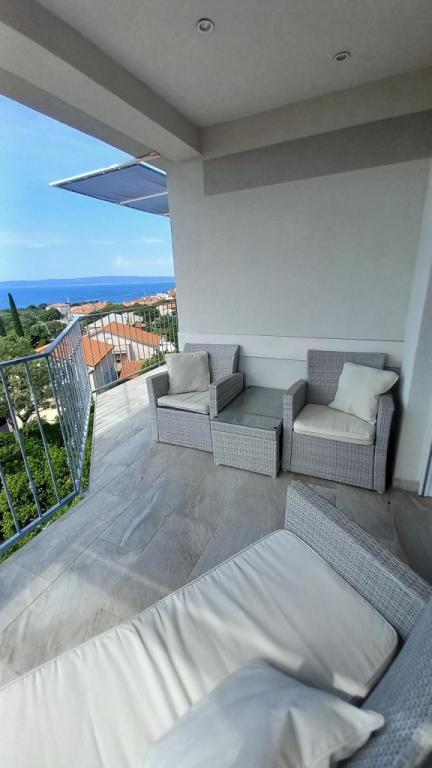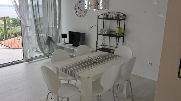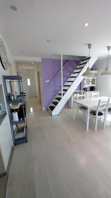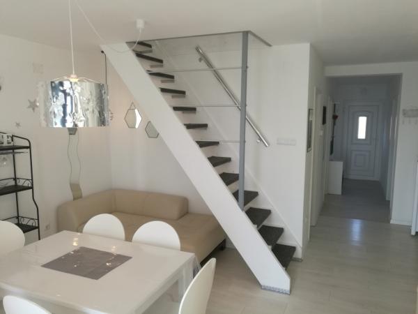 L'appartement « LAVANDA » et l'appartement « RUŽMARIN » sont deux appartements familiaux destinés aux familles nombreuses, pour des vacances avec enfants et petits-enfants. Nous n'acceptons pas les groupes de jeunes et les fêtes ne sont pas autorisées ! Les appartements sont situés dans une maison mitoyenne au deuxième étage. Chaque appartement est sur deux niveaux. Ils sont entièrement meublés de façon moderne et confortable, et leurs terrasses offrent une vue dégagée sur la mer, les toits de la ville et l'île de Krk. Ils sont situés au calme (impasse), à environ 400 m (quelques minutes à pied) de la plage principale de la ville, adaptée aux enfants et aux adultes, de la promenade le long de la mer et du parc (le long de l'hôtel Lišanj), du centre-ville de Novi Vinodolski et de toutes les commodités. La ville compte deux ports de plaisance. La ville et ses environs offrent une riche offre culturelle, gastronomique et de divertissements variés, ainsi que des programmes touristiques sur mesure, en été. De nombreux restaurants et boutiques de souvenirs sont présents en ville et le long de la plage. Chaque appartement dispose d'une place de parking (propriétaire) située devant la maison (marquée). Les appartements ne disposent pas de barbecue ; il n'est pas possible de faire des grillades sur les terrasses !
