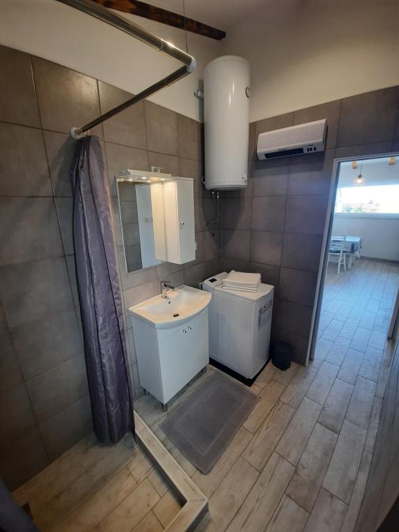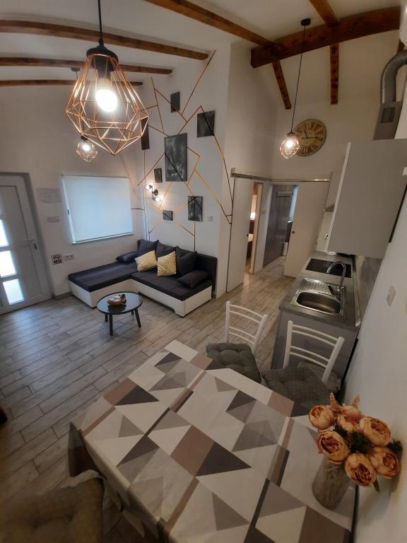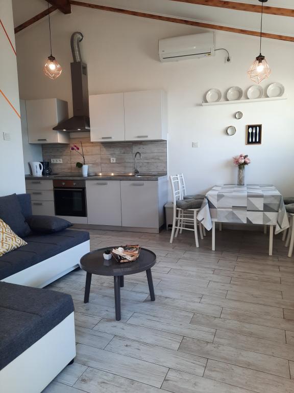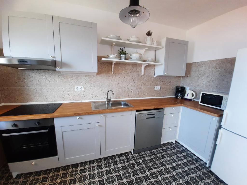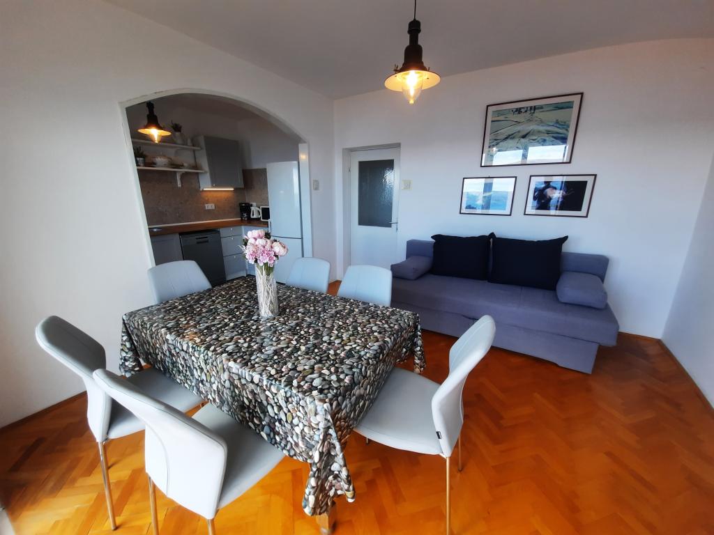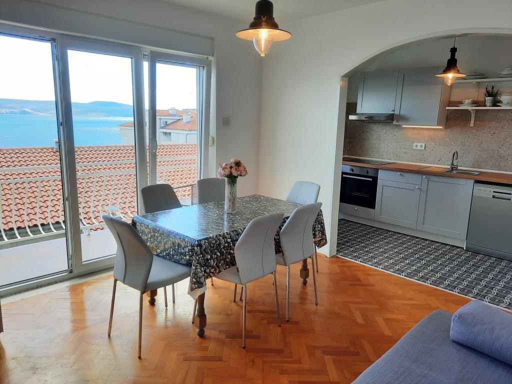 L'appartement est situé dans la partie orientale de la Nouvelle-Vinodolski, calme et verdoyant, à environ 800 m du centre et 200 m de la mer. Situé au deuxième étage de la maison, entièrement équipée, avec un grand balcon avec vue sur les pentes du Velebit, Senj Senj et les portes, et presque toute la côte est de l'île. L'intérieur se compose d'une cuisine, salle de séjour avec canapé-lit, grande salle de bains et trois chambres confortables avec six lits (total 100 m2 balcon 15 m2). Disponible pour les touristes est un jardin avec un grand parking et deux terrasses. Garage, grill, Internet sur demande. Animaux négociables. La possibilité de trouver des parts supplémentaires dans le voisinage. Grandes réductions dans la pré-saison.