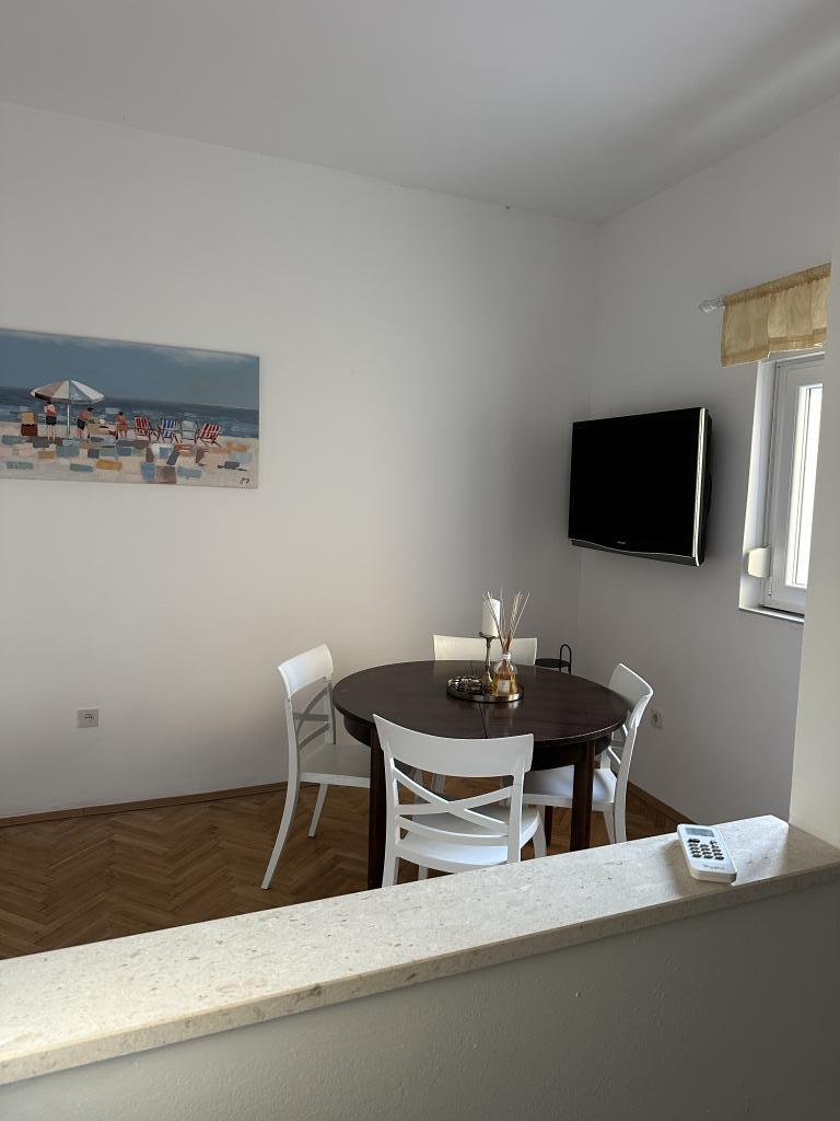 Bienvenue à l'appartement « Barka » – un coin de charme avec vue sur la mer. En plein cœur de Novigrad, à quelques pas de la mer, se trouve l'appartement « Barka » – spacieux, confortable et imprégné de la chaleur du style méditerranéen. D'une superficie de 50 m², il est idéal pour accueillir jusqu'à 3 adultes et constitue un choix parfait pour les couples ou les petites familles souhaitant des vacances au calme, loin de l'agitation touristique. L'appartement comprend une chambre séparée avec un grand lit double (180x200) et un autre lit simple confortable (100x200) dans le salon. Tous les lits sont neufs et sans supplément, ce qui garantit un sommeil de qualité et un confort optimal. Le charme particulier de cet appartement réside dans sa terrasse, partiellement couverte, offrant une atmosphère intime et une magnifique vue sur la mer. Un endroit idéal pour prendre un café le matin ou se détendre le soir.