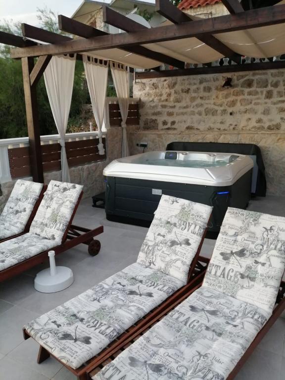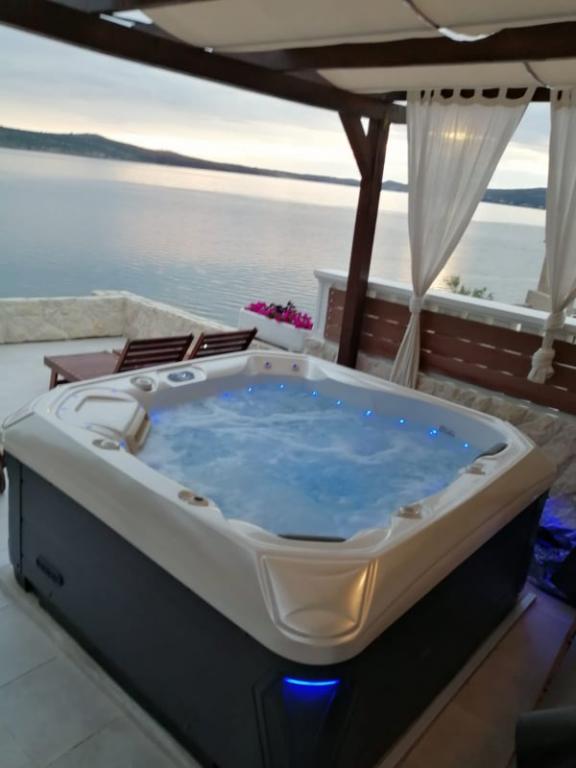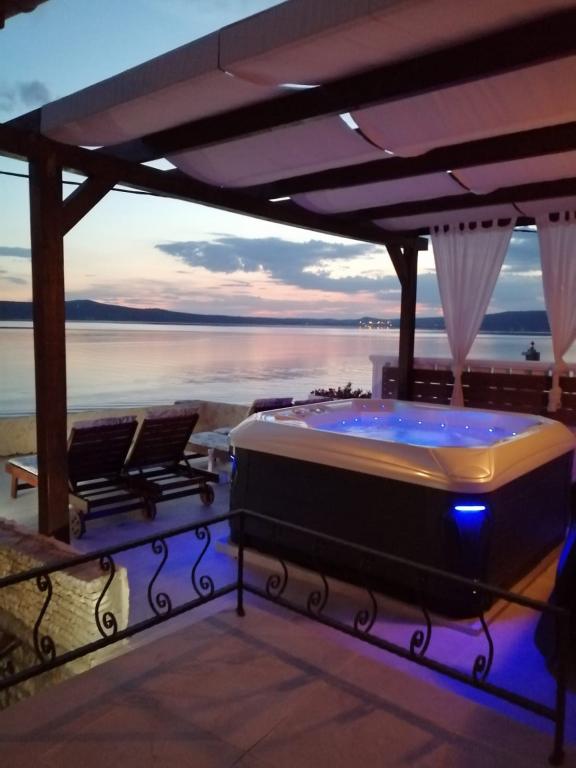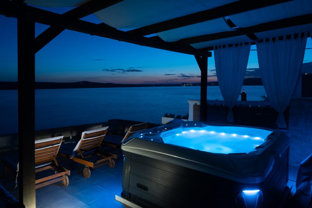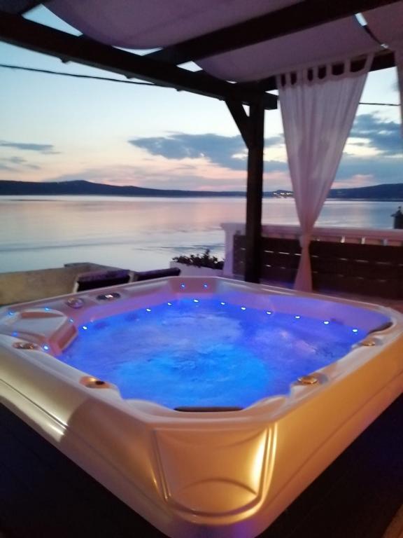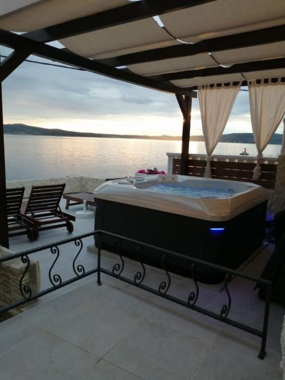 Nous vous proposons deux appartements entièrement équipés avec un beau jardin. Les terrasses offrent un grill et du mobilier d'extérieur de qualité. Le plus grand appartement au premier étage dispose d'un jacuzzi sur la grande terrasse, exclusivement à l'usage des clients du grand appartement. L'installation est située à proximité immédiate de la plage et la terrasse offre une vue magnifique sur la mer et. Velebit. Vous pourrez rejoindre le centre de Novigrad, à 500 mètres, en vous promenant tranquillement le long de la mer. Un parking gratuit est disponible à Novigrad. La ville de Zadar est à 30 km et dans les environs, à une distance de 20 à 120 km, se trouvent 4 parcs nationaux / Paklenica, les cascades de Krka, le parc national Kornati et les lacs de Plitvice. L'aéroport est à 15 km de l'appartement.