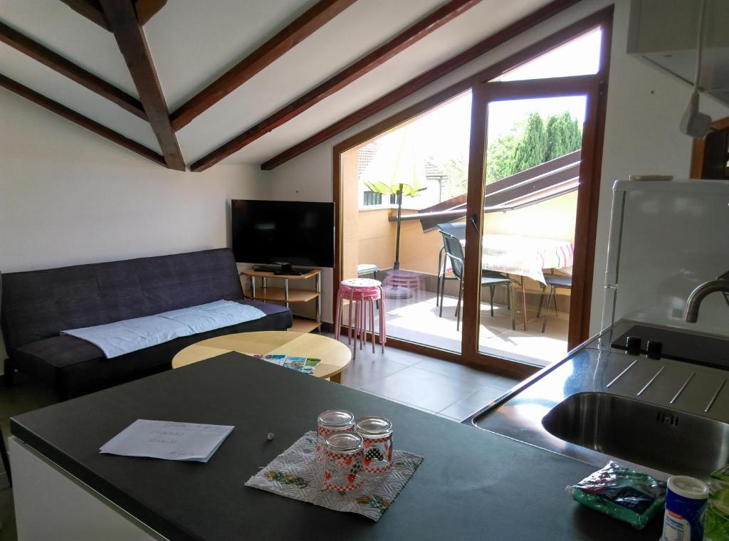 Appartement composé de deux chambres, la première avec un lit double 160X200 et une terrasse, la seconde avec deux lits 90x200, et un lit d'appoint dans le séjour. Séjour et cuisine avec une autre terrasse donnant sur le jardin. Salle de bain, wifi, parking gratuit. Il est situé au premier étage d'un immeuble avec d'autres appartements. A 200m de la plage, 5 minutes à pied. Il est situé dans un endroit calme, le village touristique DAJLA, une banlieue de Novigrad en Istrie, à 3,5-4 km du centre. Il y a un magasin à 100m, une boulangerie et un restaurant à 80m. Il est idéal pour des vacances au calme en famille avec enfants ou adultes. Les animaux domestiques, fumer, les fêtes privées ou faire du bruit ne sont pas autorisés. Il est possible d'ajouter un autre lit supplémentaire sur demande, uniquement pour plus de 4 nuits, moyennant un supplément.