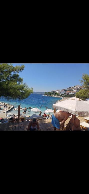 L'appartement Katija est situé à Okrug Gornji, à seulement 30 mètres du bord de mer. Notre appartement offre une combinaison parfaite de calme, de confort et d'une vue enchanteresse sur de nombreuses îles dalmates. C'est une destination idéale pour les familles, les couples et tous ceux qui recherchent la détente dans un environnement naturel, loin de la foule, mais à proximité de toutes les commodités nécessaires. Profitez de votre café du matin ou du coucher de soleil du soir sur votre terrasse privée, où une vue à couper le souffle vous attend. À seulement 5 minutes à pied se trouve une plage bien entretenue adaptée aux enfants, avec des eaux peu profondes et de l'ombre naturelle - idéale pour des vacances en famille. Caractéristiques principales de l'appartement : proximité de la mer, terrasse avec une belle vue, cuisine entièrement équipée avec coin repas et salon, deux chambres avec lits doubles, salle de bain avec douche et équipements de base, Wi-Fi gratuit, climatisation, TV, parking gratuit. Que vous planifiez des vacances actives ou que vous souhaitiez simplement profiter du soleil et de la mer, notre appartement dans le quartier de Gornji offre tout ce dont vous avez besoin pour un séjour inoubliable.